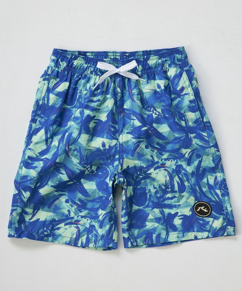 キッズのボードショーツ。トロピカルカモフラージュの柄が夏らしくスタイリッシュで大人っぽいキッズ用ボードショーツです。軽量で乾きやすいポリエステル素材を使用しており、水遊びやプール、アウトドアにぴったりの一本です。
