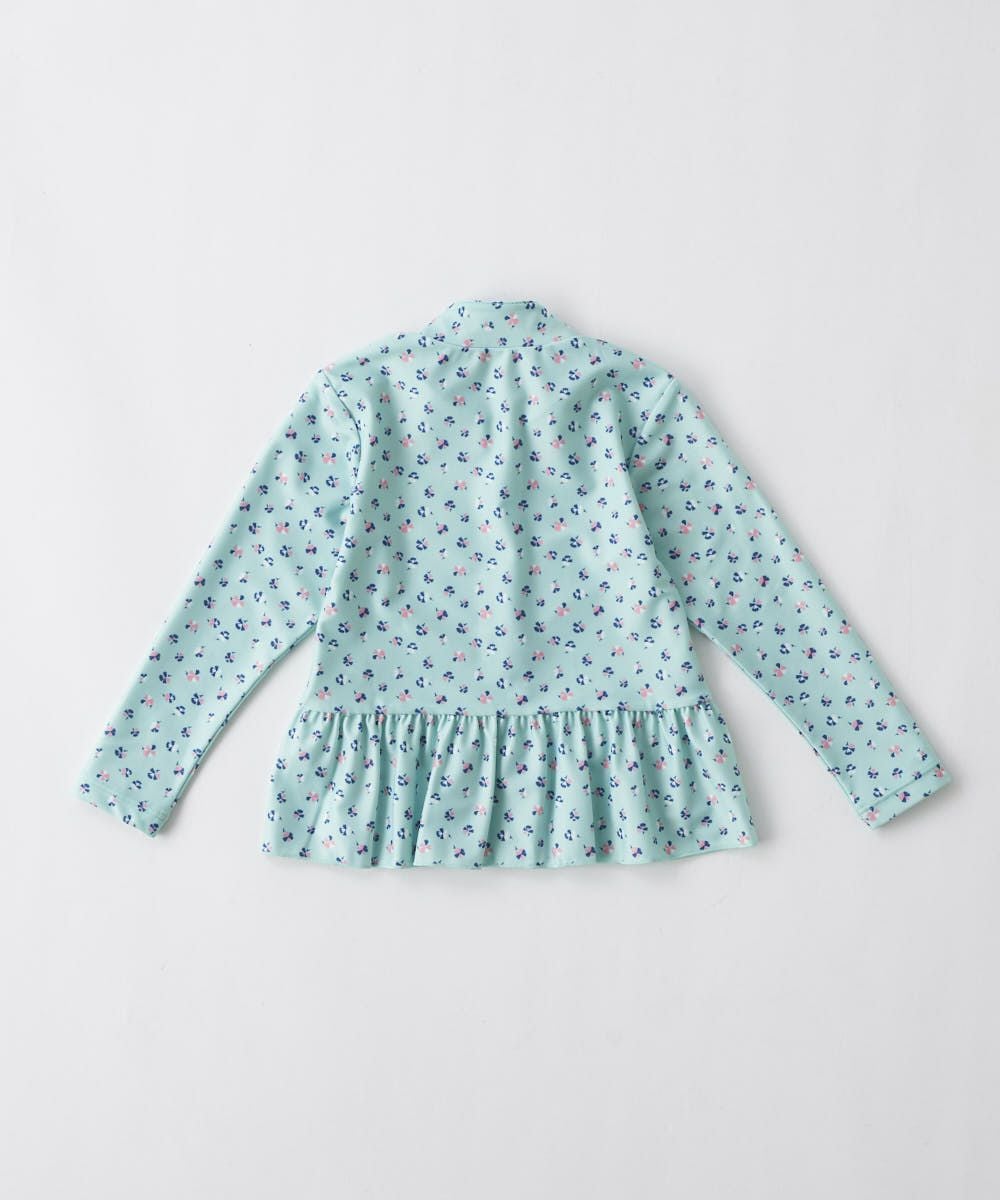 上品な配色の小花柄がかわいいラッシュガード。裾がフリルになっているところも、さらにかわいいポイントです!