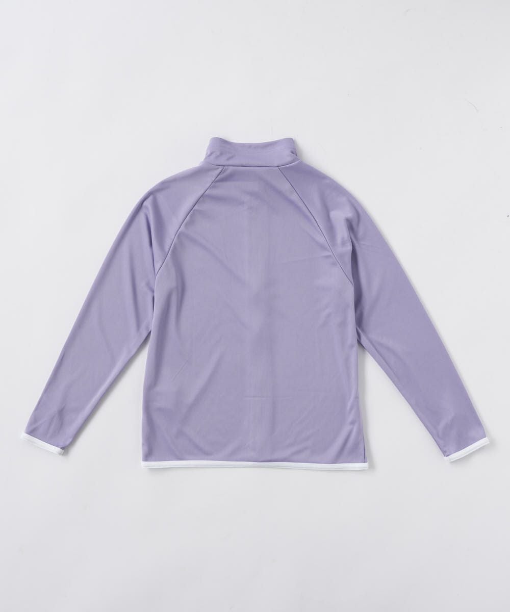 シンプルでスポーティなデザインに、ジッパーとパイピングがアクセントになっているUVラッシュガードです。左胸のロゴがワンポイントでおしゃれ!デザインもシンプルなので着回しやすい!