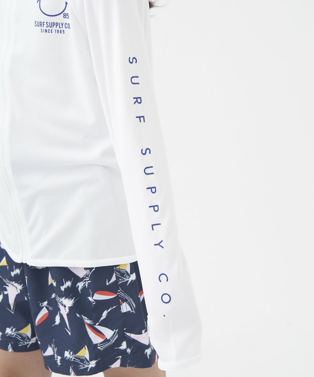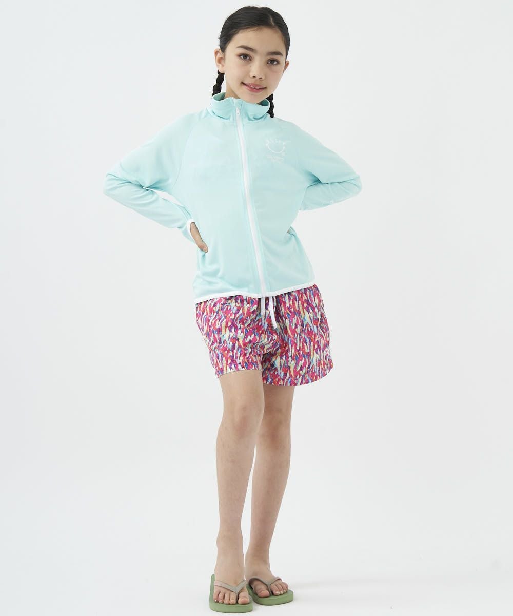 RUSTY人気のニコちゃんシリーズのラッシュガード。フロントジップのスタンドカラー仕様です。 素材は超軽量のポリエステルスムース生地で、吸汗速乾とUVカット機能を兼ね揃えています。