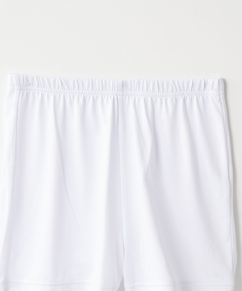 ストレッチ素材で動きやすいショートパンツ。足回りはほど良いサイズ感で、1枚で着たりスパッツと合わせたりコーディネイトを楽しめます。別付けでインナーパンツがセットになっているので透けにくく安心です。