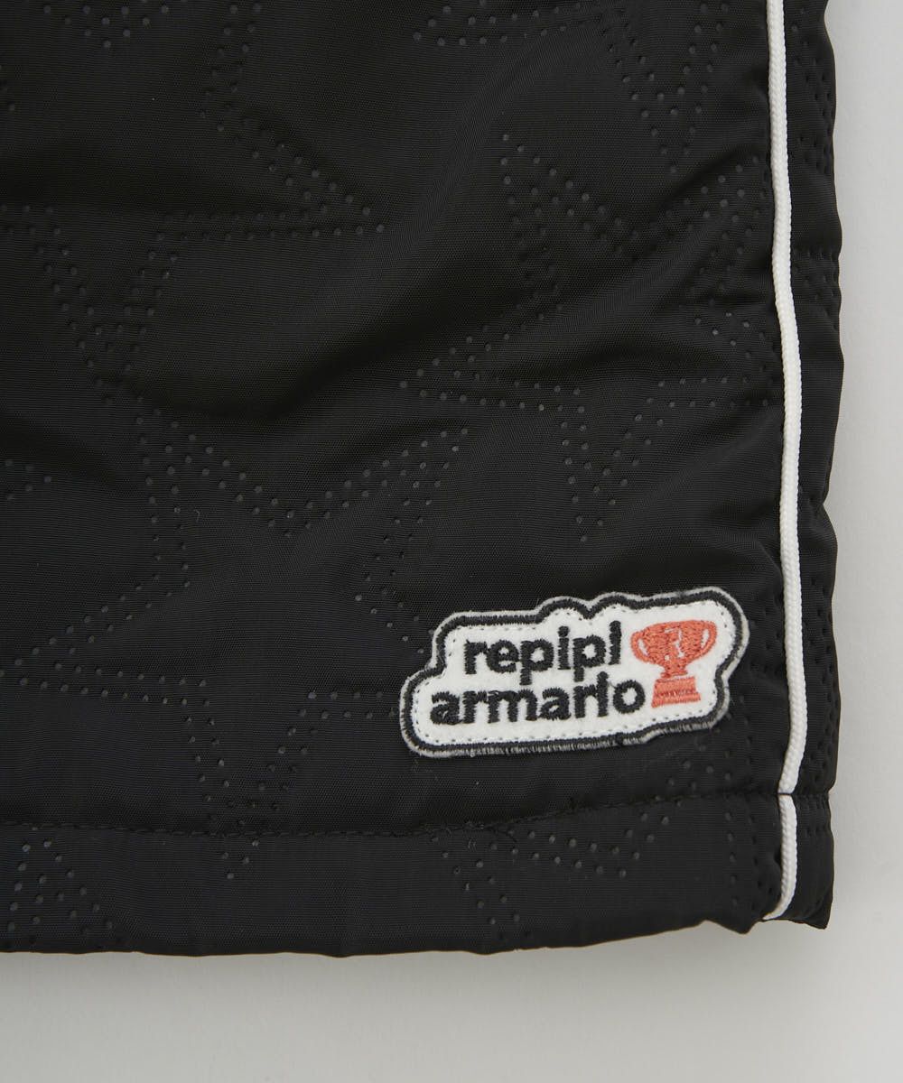 REPIPIの中綿キルトスカート。裏地は起毛トリコットで暖かく、ウエスト部分はゴム素材を使用し動きやすい一枚です。