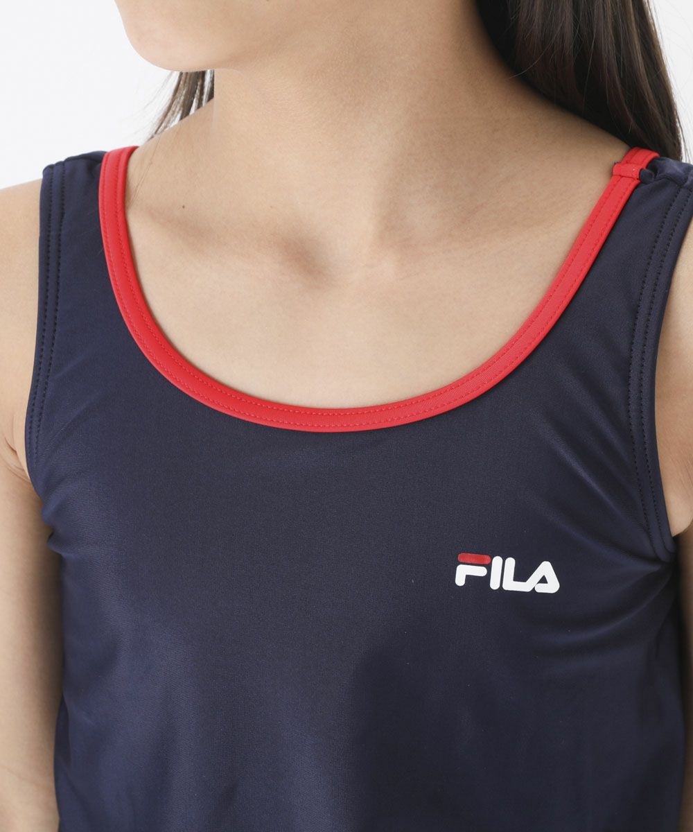 キッズ ブランドスクール水着 ネイビー/レッド キュロット一体型