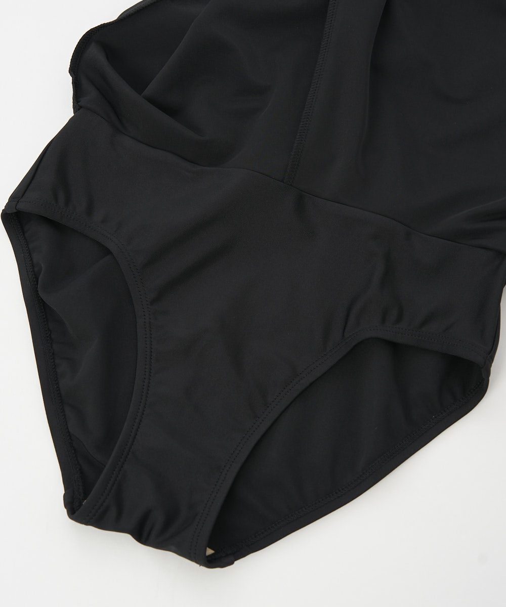 ワンピースのようなデザインがかわいいシンプルなスクール水着。