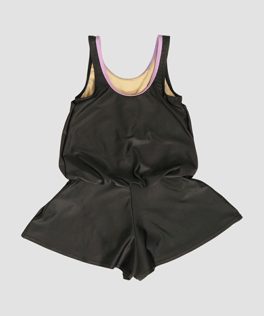 学校やスイミングスクールなどの着用に最適なスクール対応スイムウェア。ウエストギャザーデザインが可愛らしいNEWルックのワンピース水着です。安心のキュロパンタイプなので捲れも気になりません。
