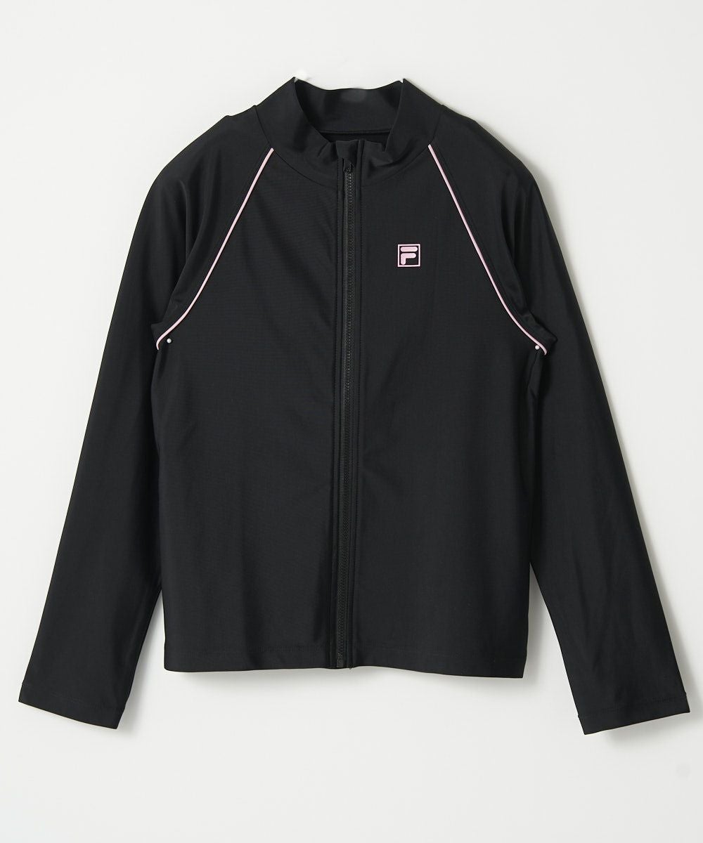 キッズ 長袖フルZIPラッシュガード/ブラック×ピンク