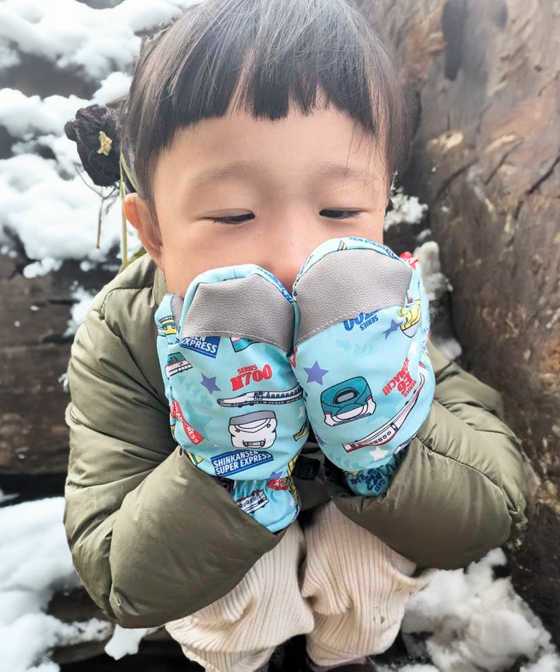 人気の新幹線の柄がかわいいスノーミトン。雪遊びには欠かせない手袋は、のぞみ、こまち、はやぶさなどお気に入りの新幹線柄でもっと楽しく!電車好きキッズへのプレゼントにも!耐水5000mmをクリアしているので、しみこみにくく、遊びに夢中になれます。
