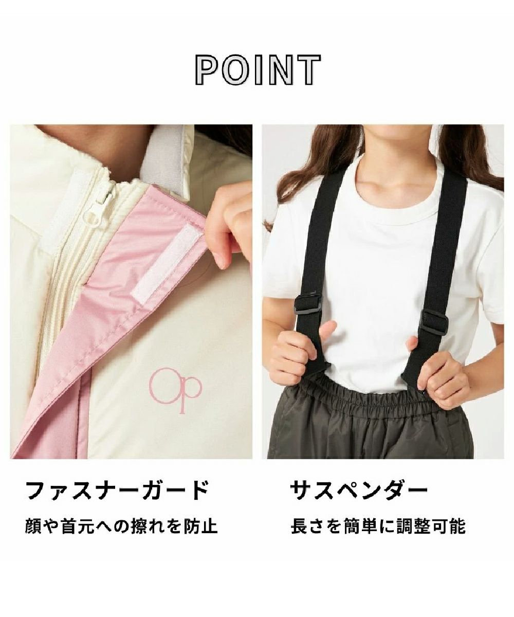 スキーやスノーボード、雪の中の通学にも最適な上下セット。撥水加工がされており、スノーウェアとしても雨の日や防寒着として大活躍!