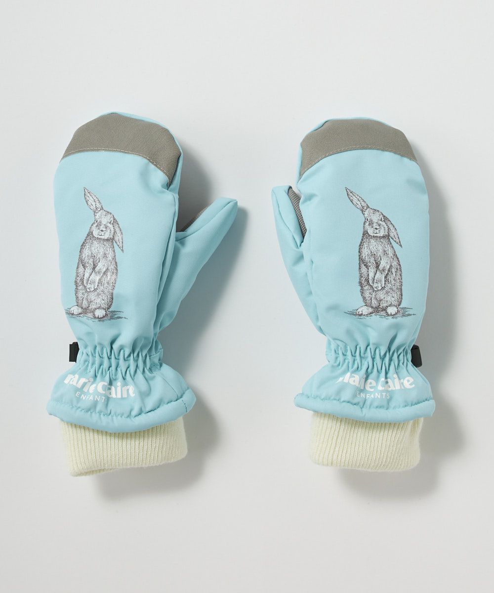 ウサギのデザインがかわいい雪遊び用手袋。耐水5000mmをクリアしているので、雪遊びをしてもしみこみにくく、お子様もおもいっきり雪遊びを楽しめます。手のひらは柔らかいのに滑りにくいラバー素材。手首は大きなタブ付きで留めやすい仕様。はっ水加工生地を使用、内側に防水フィルムを使用しているので水の侵入を防ぎます。同柄のスキー・スノーボードウェアもございますので、合わせたコーディネートがおススメです!耐水5000mm