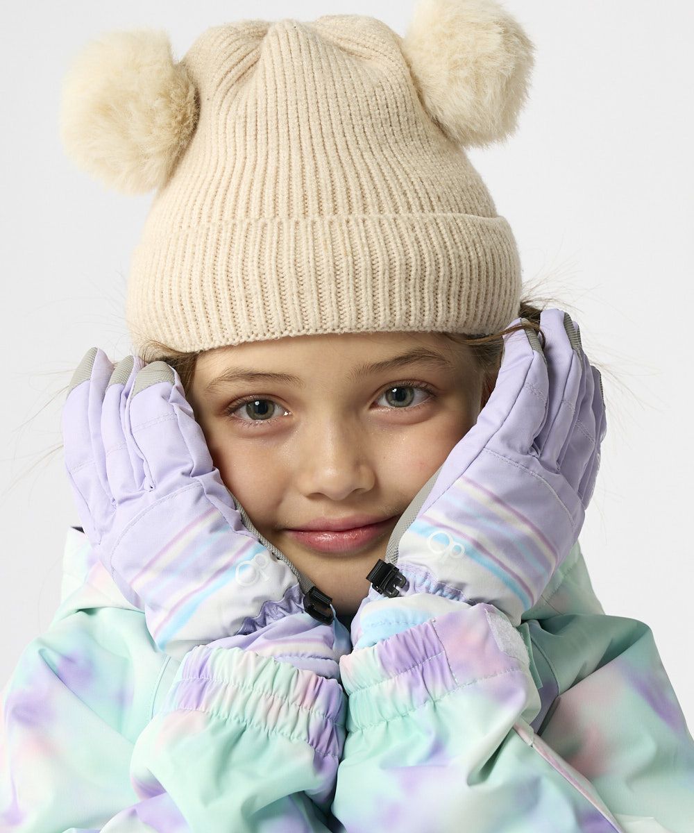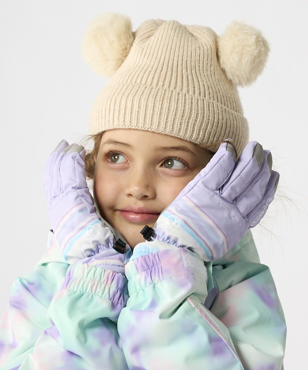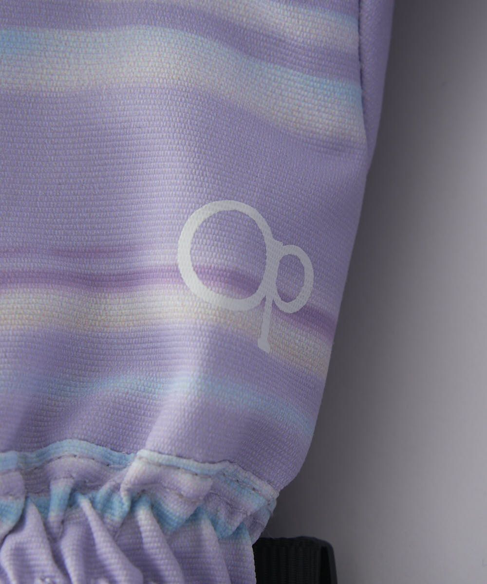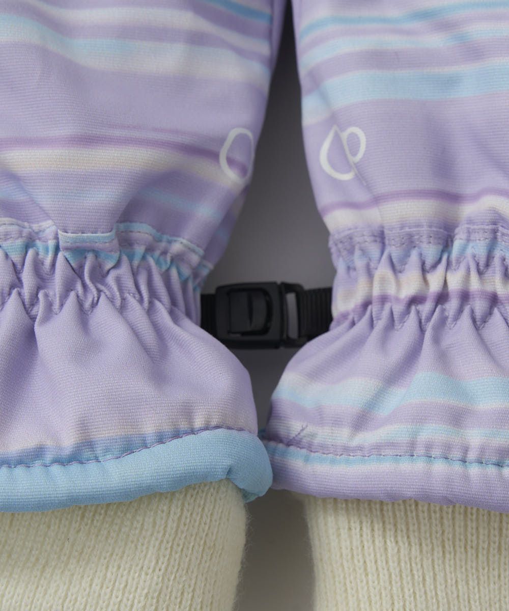 手のひらは柔らかいのに滑りにくいラバー素材。手首は伸縮性のあるゴム入りで、着脱も楽に、また、冷たい風や雪の侵入も防ぎます。表地ははっ水加工生地を使用、内側に防水フィルムを内蔵しているので水の侵入を防ぎます。ほど良い中綿の分量で暖かさを保ちながら指も動きやすい設計です。