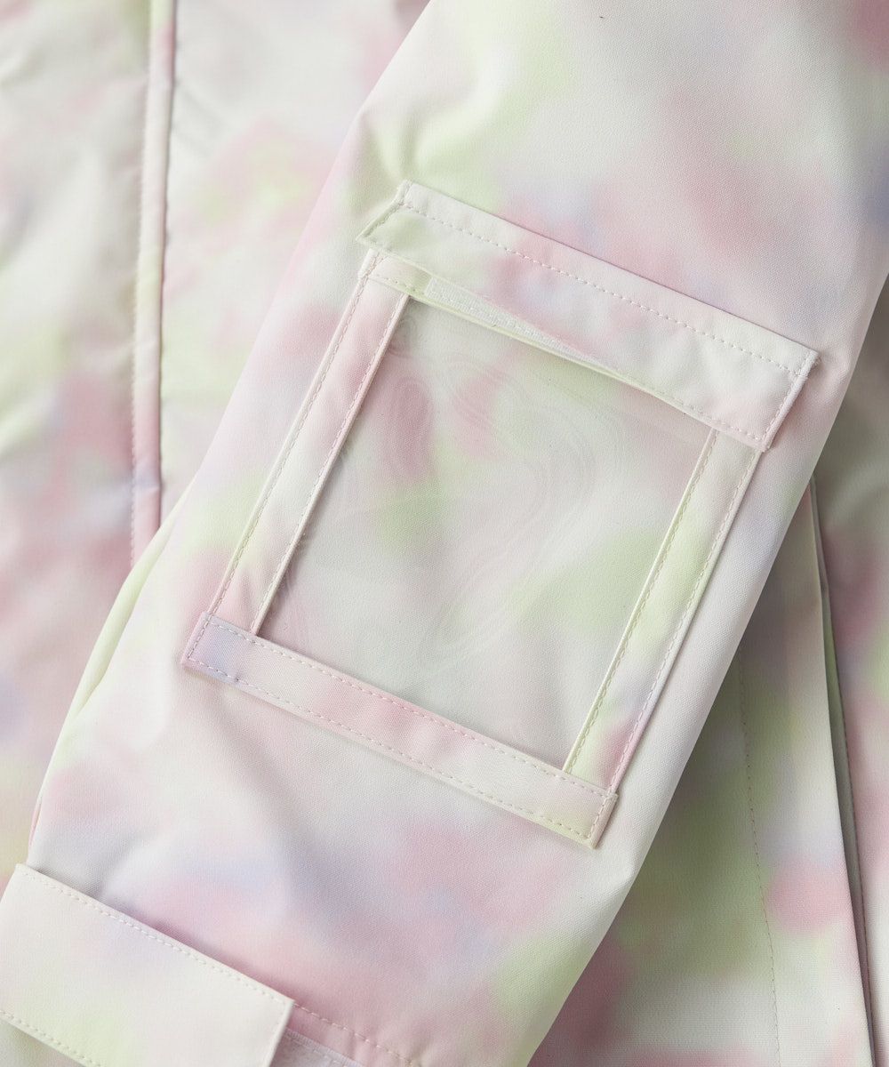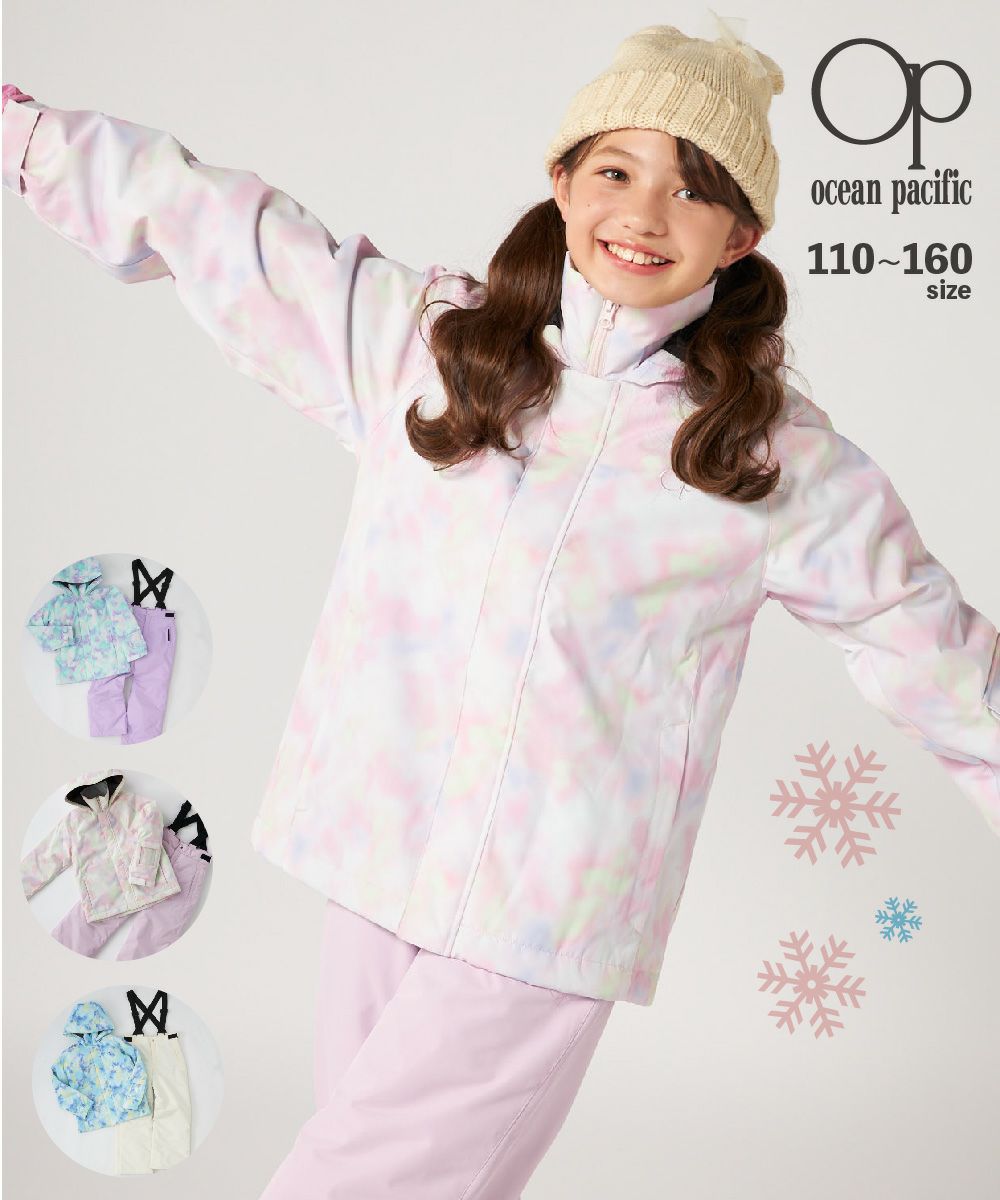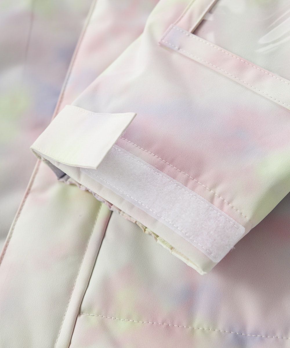 ジャケット&パンツのスキー・スノーボードウェア上下セットです。スノボーやスキー、雪遊びなどウインタースポーツで大活躍!ゲレンデで目を惹く、色鮮やかなタイダイ柄。サスペンダーで調整可能なので、成長に合わせて長く着られます。左袖には便利なパスケース付き。お子様が安心して着用できる、ママもうれしい機能付き!
