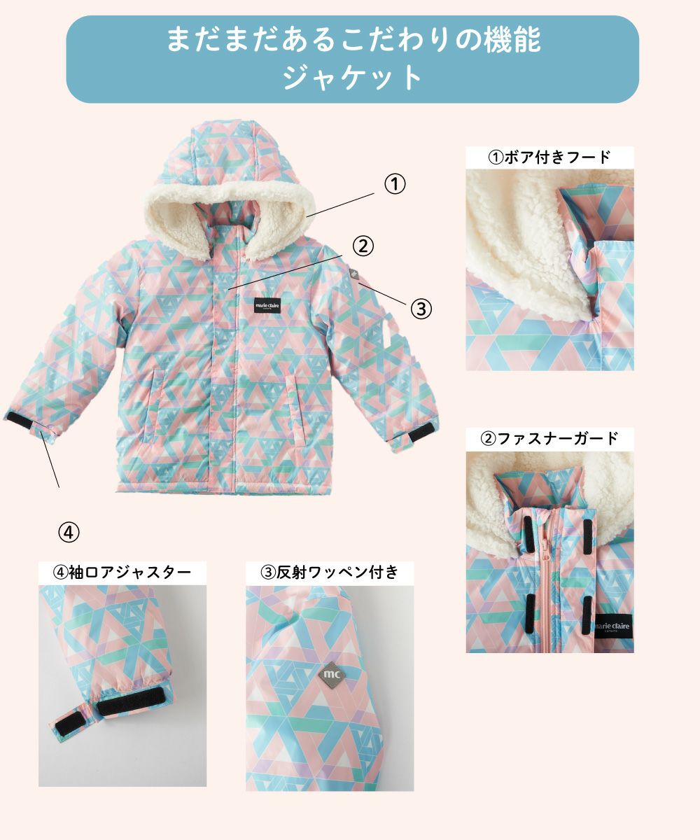 他の画像を見る 2点20%OFF、3点30%OFF、4点40%OFF marie claire ENFANTSキッズ サイズ調整付き 幾何柄スキー・スノーボードウェア上下セット 定価 ¥ 10,780 ¥ 7,007 税込 お気に入りに登録する