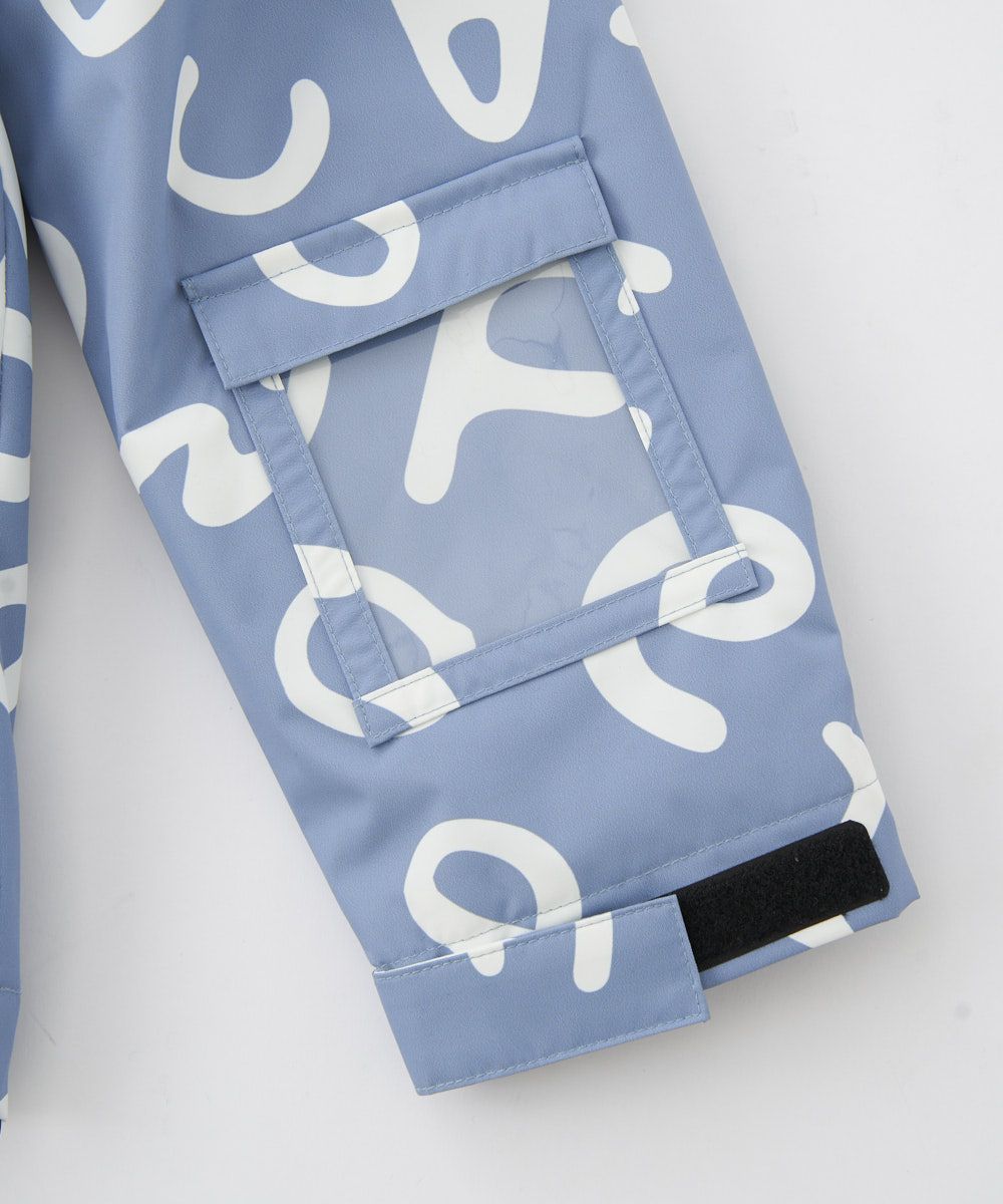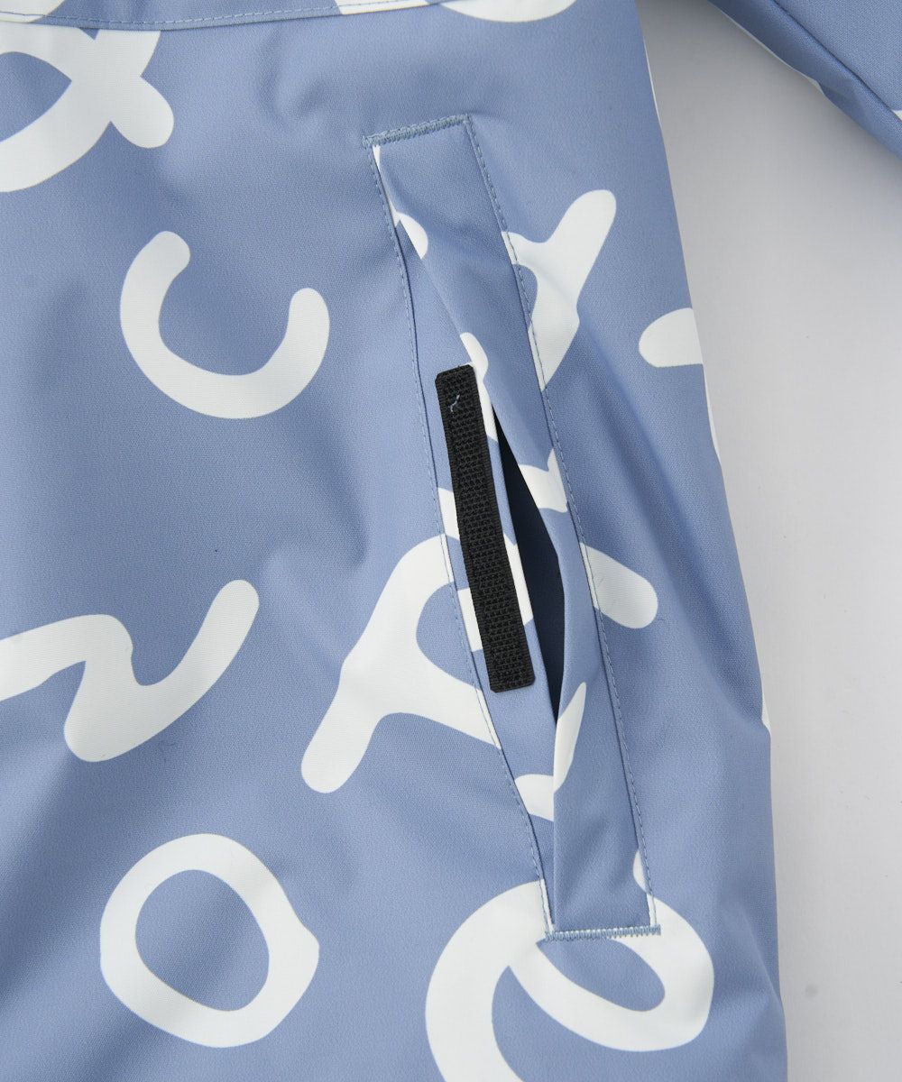 飛び柄ロゴがビビッドで可愛く、ゲレンデで目を惹くキッズ用スノーウェアです。