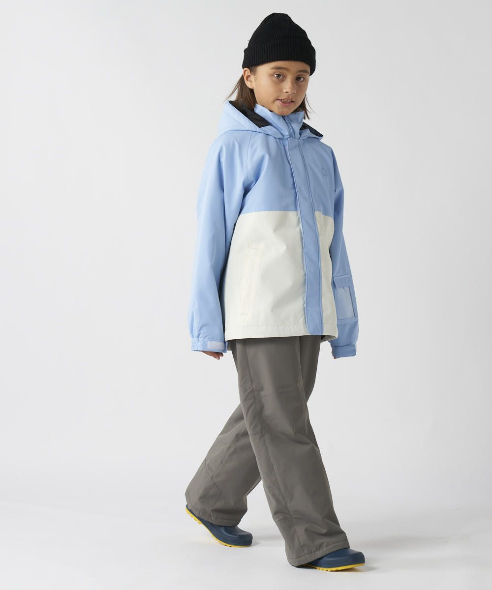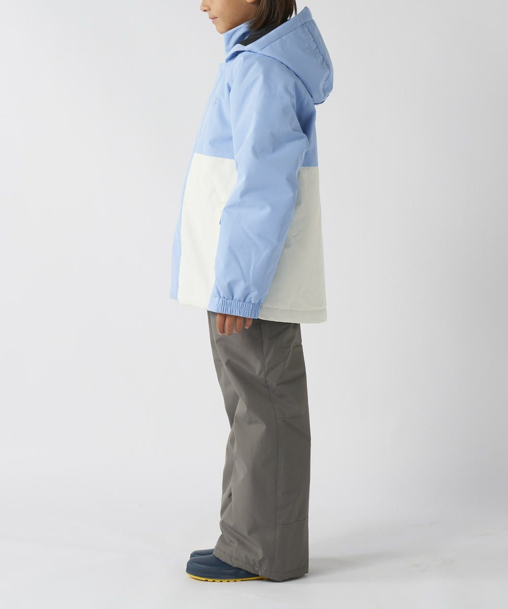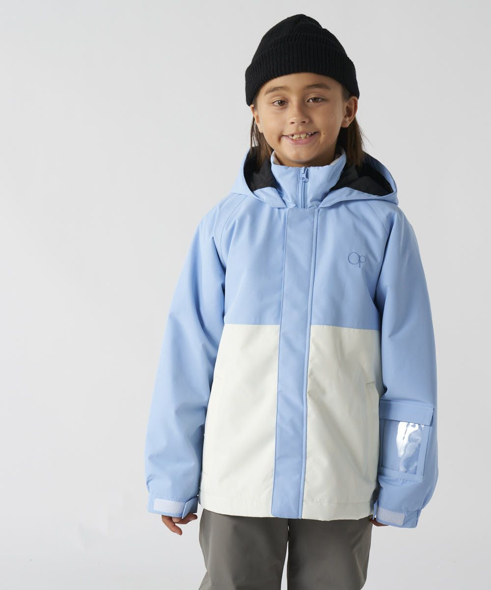 ジャケット&パンツのスキー・スノーボードウェア上下セットです。スノボーやスキー、雪遊びなどウインタースポーツで大活躍!ゲレンデで目を惹く、バイカラーデザインです。サスペンダーで調整可能なので、成長に合わせて長く着られます。左袖には便利なパスケース付き。お子様が安心して着用できる、ママもうれしい機能付き!