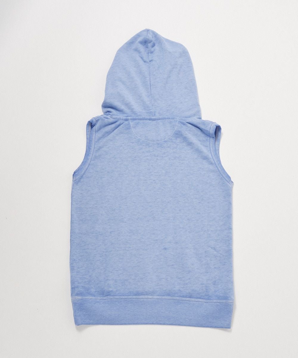 淡いカラーがポイントの子供用袖なしフード付きパーカーです。シンプルデザインにベーシックカラーで何にでも合わせやすい仕様。スカートやデニムなど少し細身のボトムスに合わせるとオシャレ。