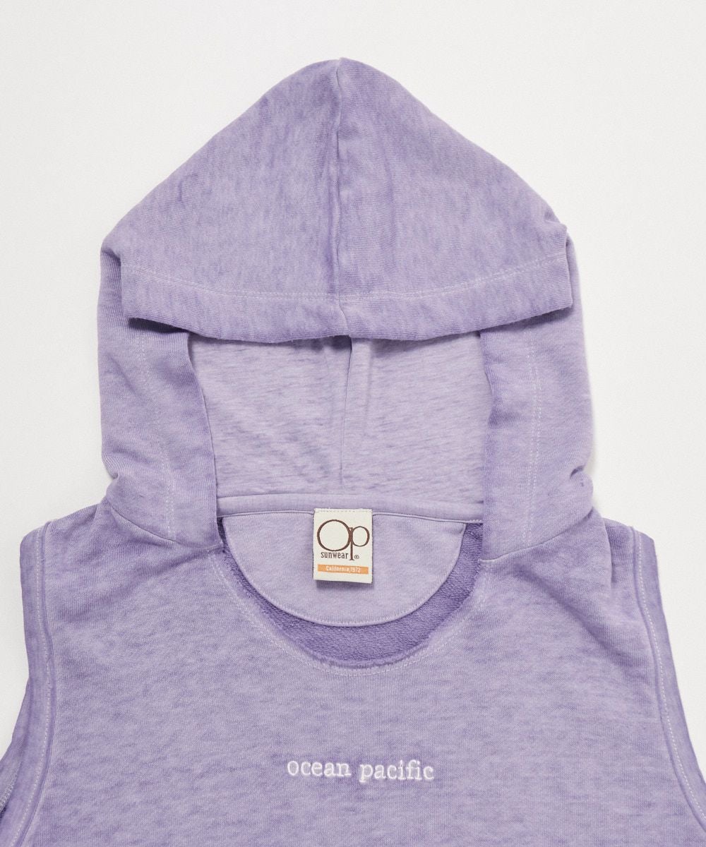 淡いカラーがポイントの子供用袖なしフード付きパーカーです。シンプルデザインにベーシックカラーで何にでも合わせやすい仕様。スカートやデニムなど少し細身のボトムスに合わせるとオシャレ。