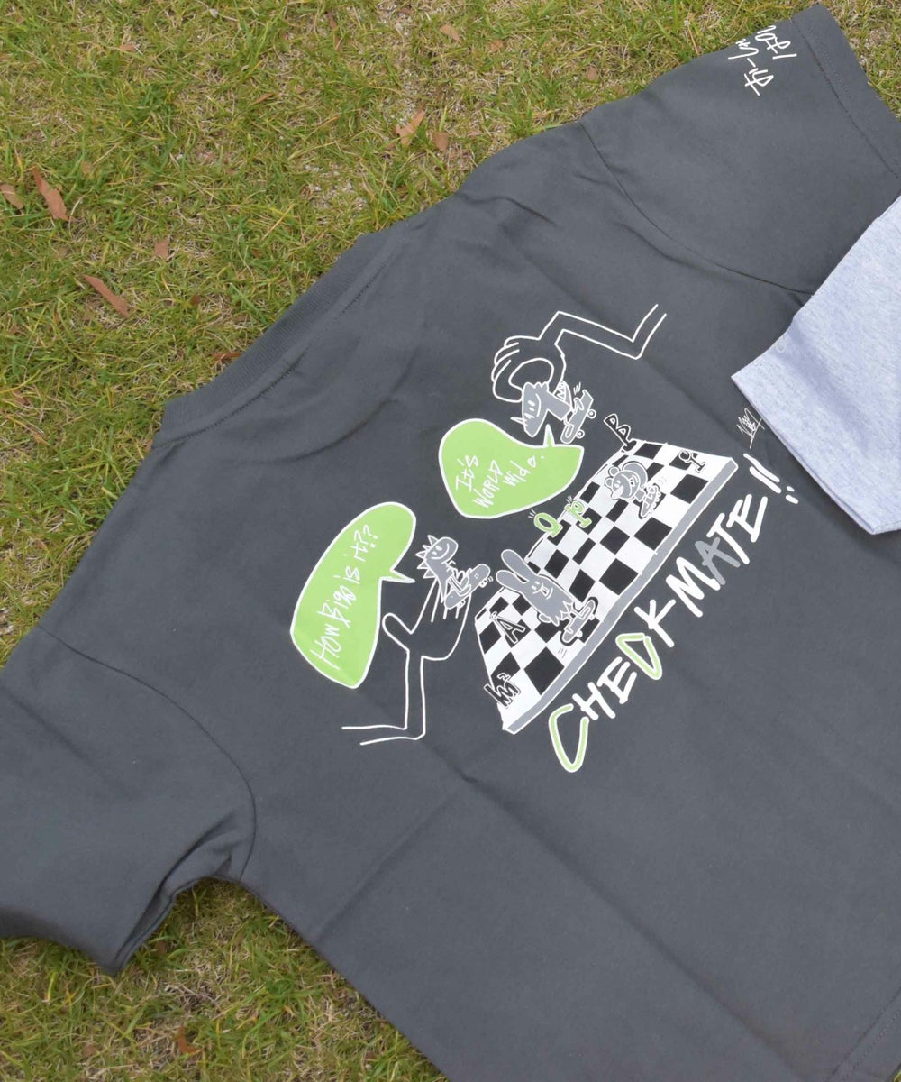 今回のTシャツのテーマはともだちです。みんながいたらどんな遊びでもできちゃう!チェスにだってなれちゃうかも!そんなテーマをキッズの大好きな恐竜やおばけ、動物たちで表現しました。