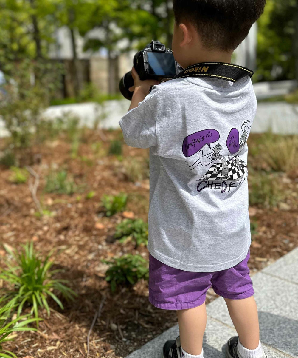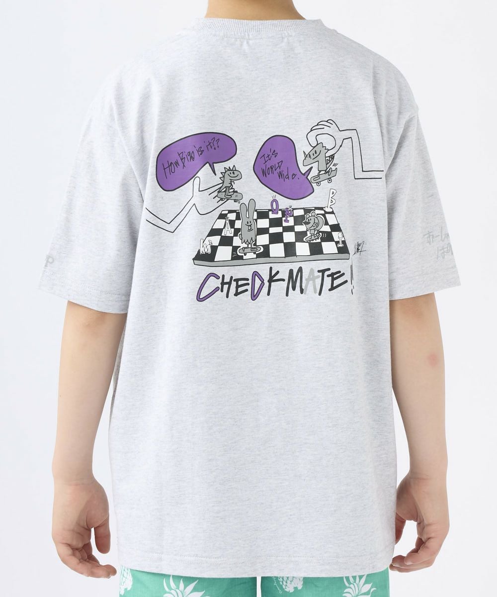 今回のTシャツのテーマはともだちです。みんながいたらどんな遊びでもできちゃう!チェスにだってなれちゃうかも!そんなテーマをキッズの大好きな恐竜やおばけ、動物たちで表現しました。