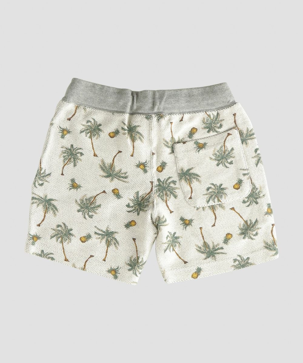 ヤシの木とパイナップルが全体に施された夏らしいハーフパンツ。トロピカルなプリントが引き立つデザインで、シンプルトップスと合わせるだけで今っぽいコーディネートが完成します。