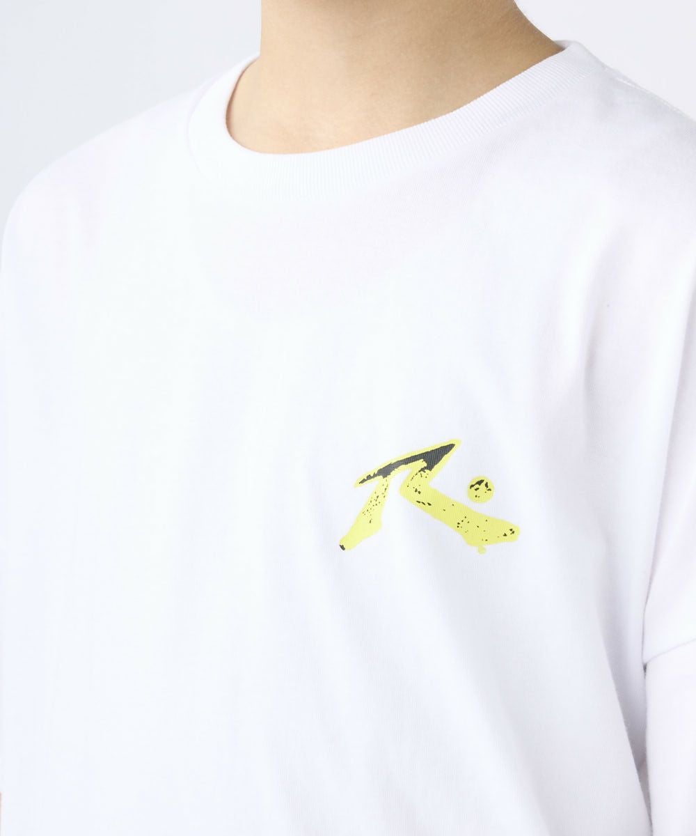 ボディの素材は、オーガニック綿70%とリサイクルポリエステル30%を混紡し、 吸汗速乾と UVカット機能を兼ね揃えた未来につなぐサスティナブル素材を使用しています。 RUSTYのR-DOTアイコンを手書きのサイケデリックカラーで仕上げています。