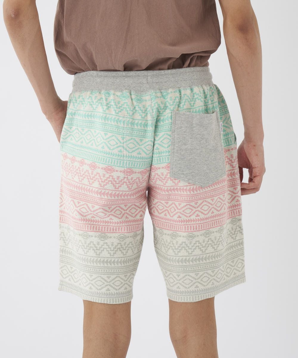 Op売れ筋No.1のリバーシブル裏毛ショーツ。 裏毛のループ側にはネイティブ柄をプリント。 ゆったりとしたシルエットで幅広い年齢に大人気なアイテムです。