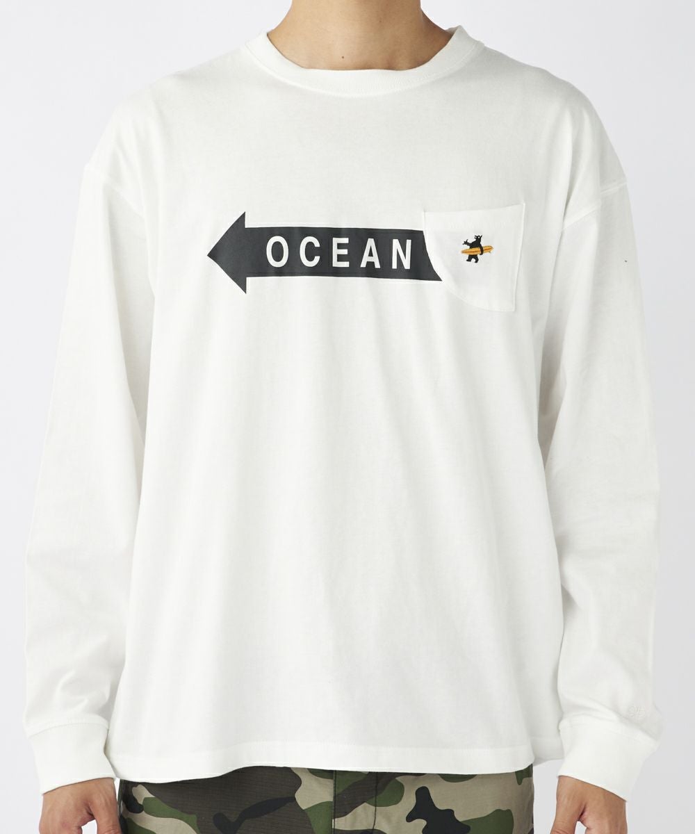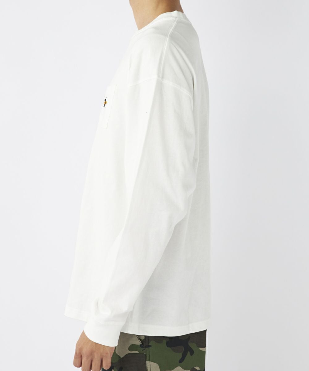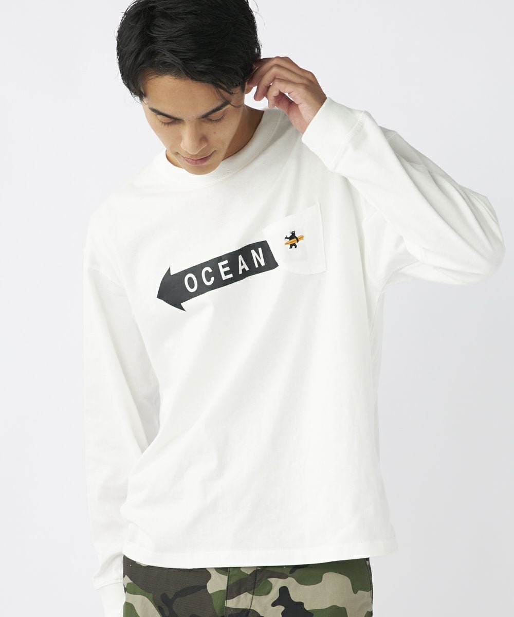 人気のリトルベアが胸ポケットにアクセント。サーフボードをもった刺繍のリトルベアが高級感!袖口切り替えで腕をまくっても落ちてこないのがノンストレス!!シルエットは少し肩落ちのゆるっとタイプで、秋口1枚でも使えますし、冬はレイヤードするインナーとしても使えるアイテムです!!綿100%で可愛らしさとリラックス感を両立させた一枚です。