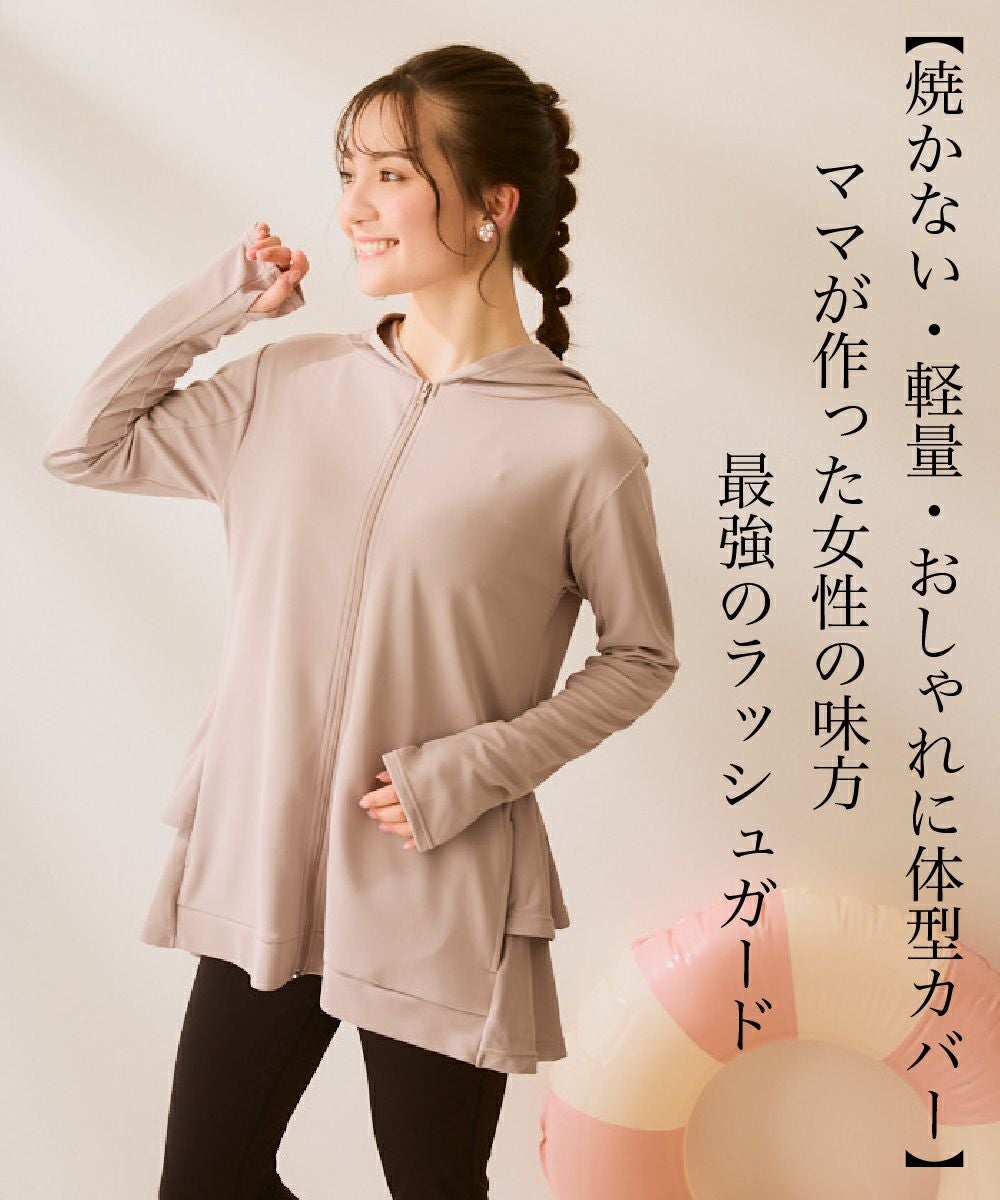 レディース ママが作った体型カバーができるラッシュガード 水陸両用UVラッシュパーカー