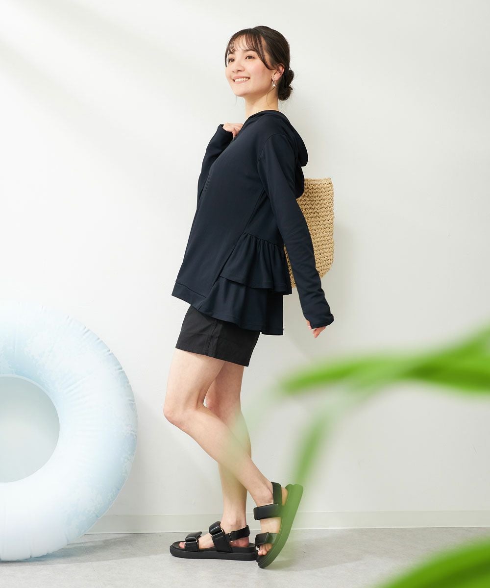 後ろのフリルは、自然に気になるおしり部分をカバーします。