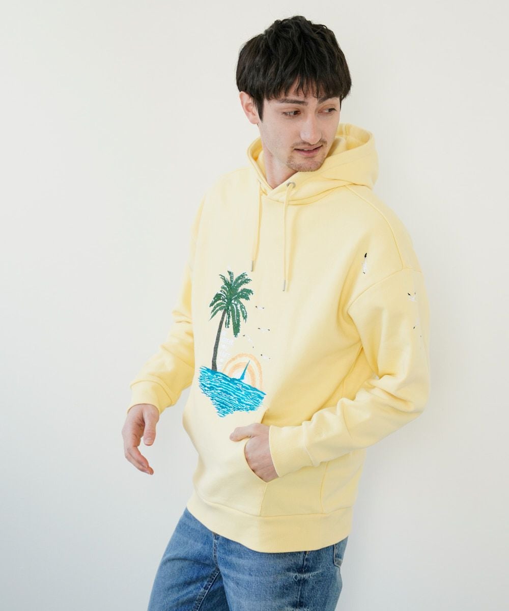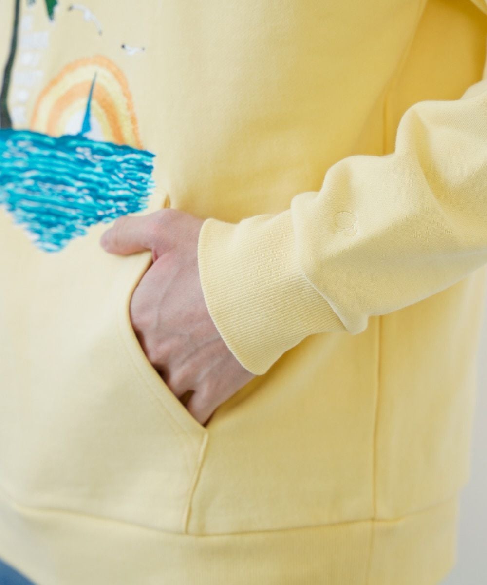 ポケット部分まで刺繍がつながっているのがポイント。 肩の位置のカモメ刺繍もボディと袖までまたがったこだわりパーカー