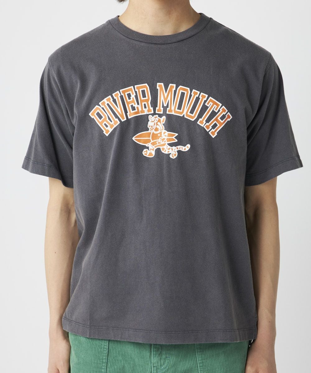 メンズ レトロ ヴィンテージ風 オゾンウォッシュ加工 ロゴプリントTシャツ