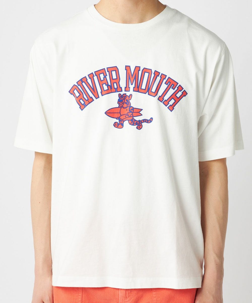 メンズ レトロ ヴィンテージ風 オゾンウォッシュ加工 ロゴプリントTシャツ
