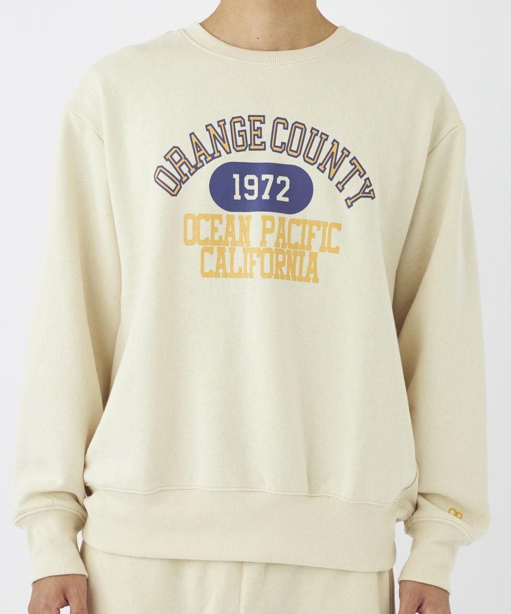 オレンジカントリーのロゴが際立つクルースウェット。裏毛素材で暖かく、オリジナルなデザインが OPらしさを引き立てます。ユニセックスで使えるスウェットで、袖口はリブなので袖をまくっても落ちてこない!!袖口の配色OPロゴ刺繍もポイント。男女と合わず着回せる大人カジュアルコーデにぴったり!