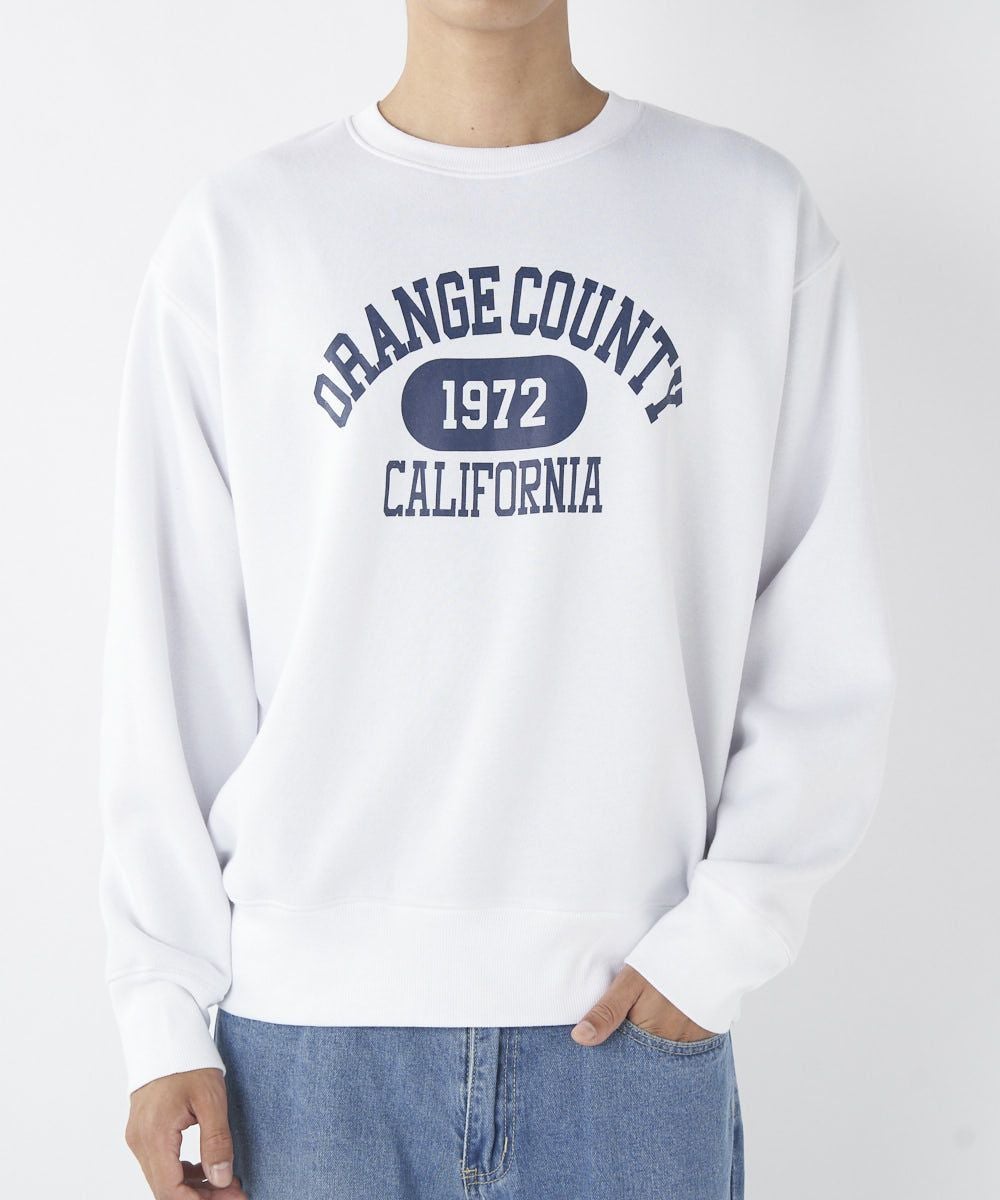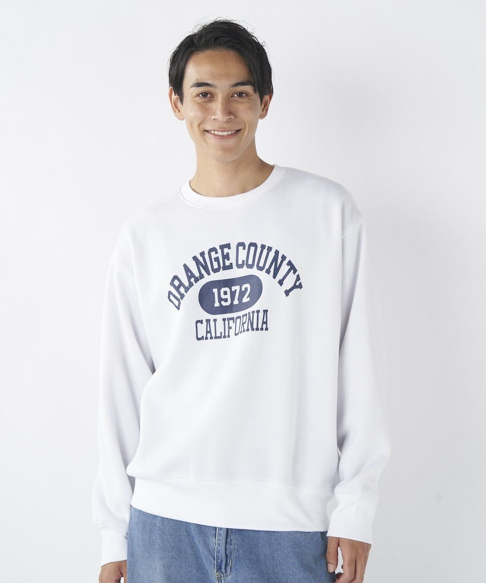 メンズ フロントカレッジロゴ裏起毛クルースウェット