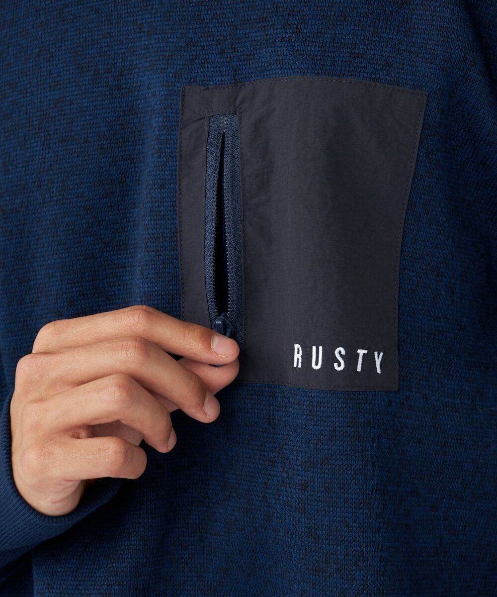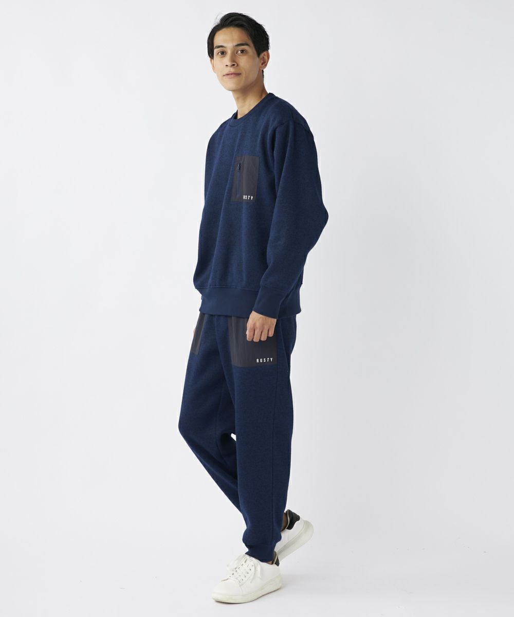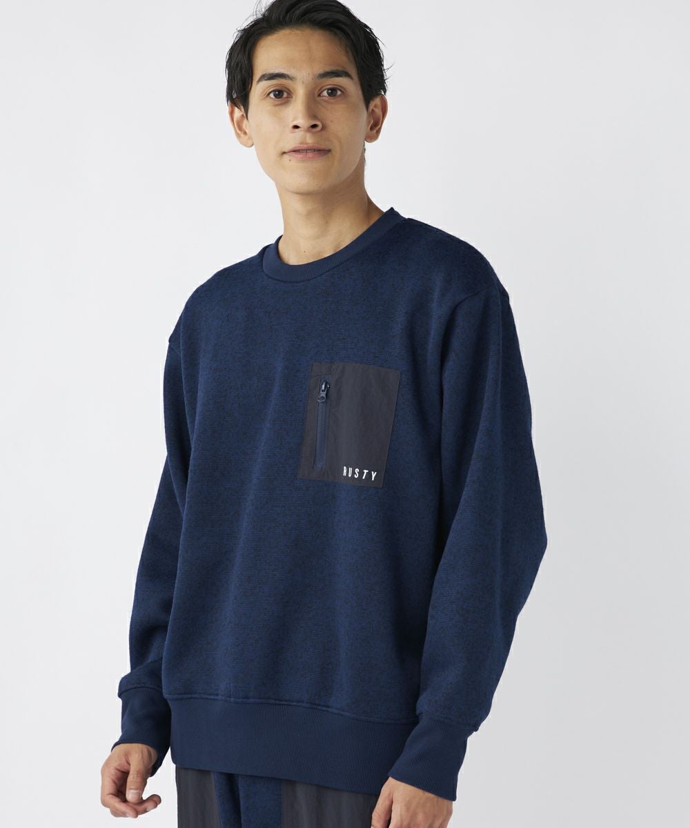 洗練されたスタイルを演出するニットフリース。布帛のポケットがアクセントになったデザイン。 クルースウェット感でおしゃれに決まる。