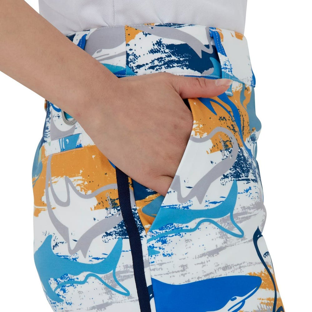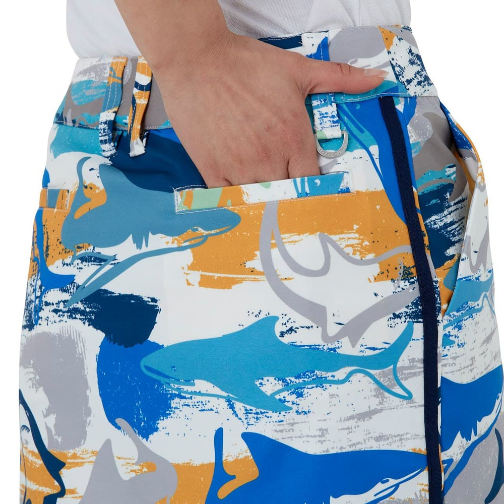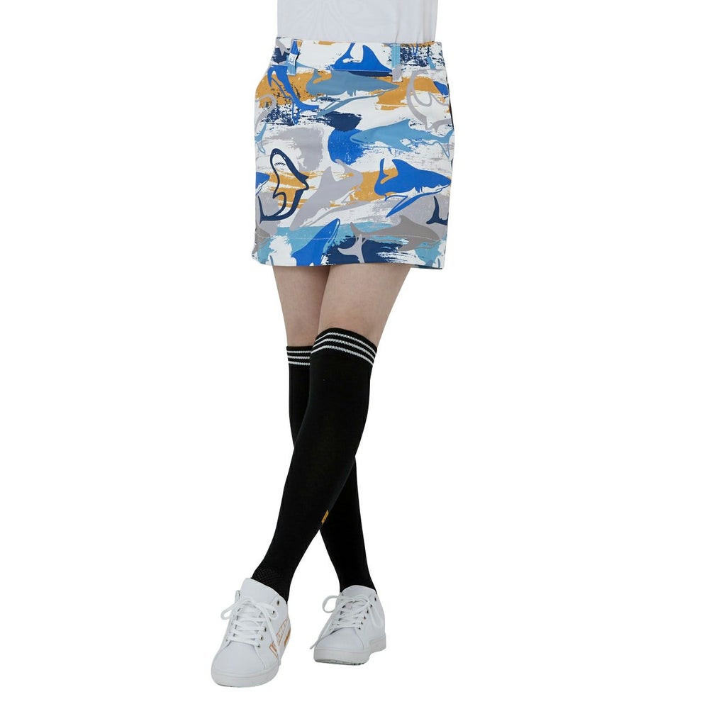 動きやすいポリエステルツイル素材を使用した柄スカート。 ネオンカラーを打ち出しに今シーズンのインパクトのある1柄を展開。