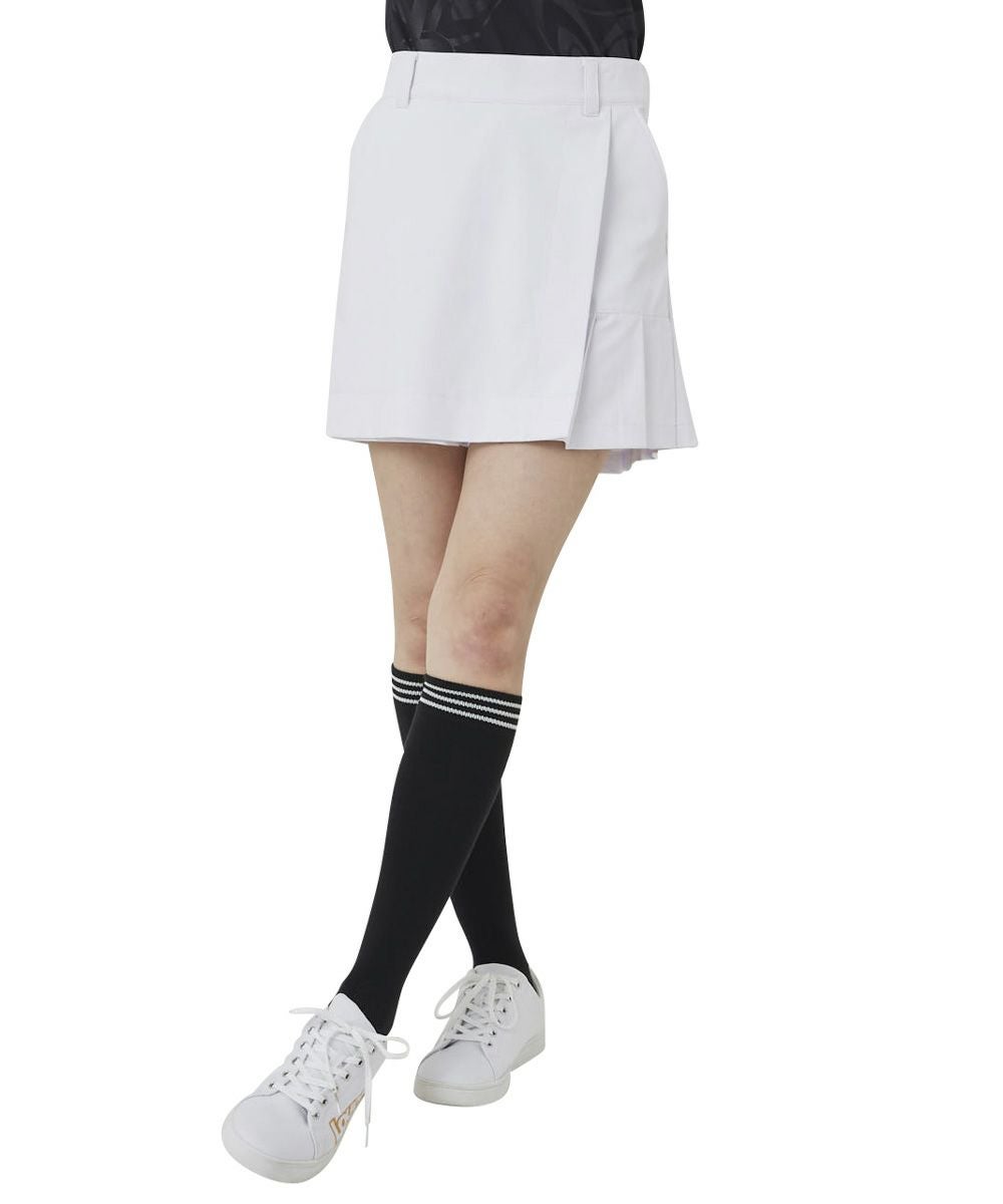 4Wayストレッチ素材で前から見るとスカート、後から見たらキュロットタイプのデザイン。裾のプリーツも女性らしいシルエットでキュートなコーディネートが叶います。