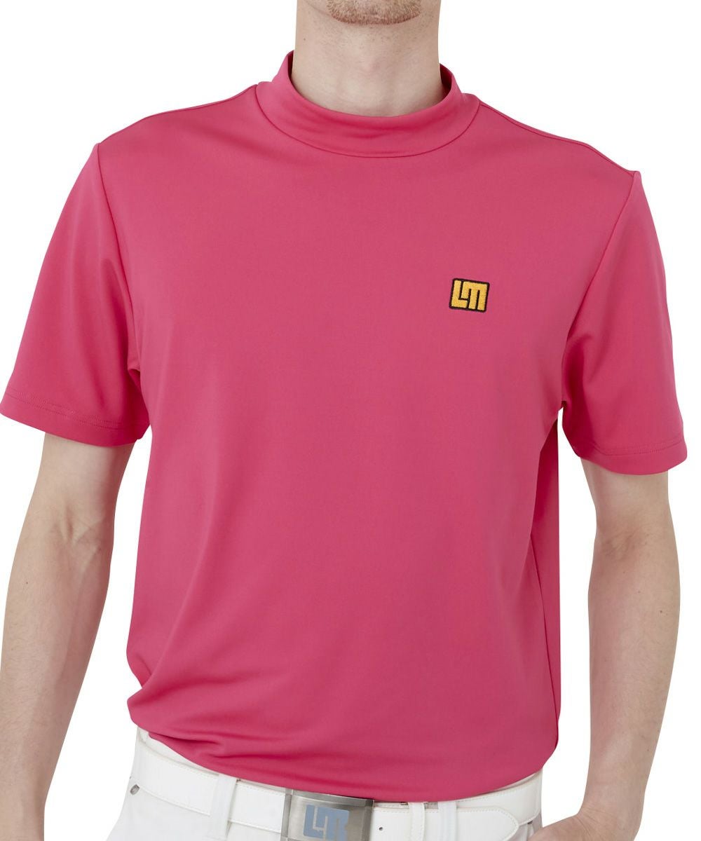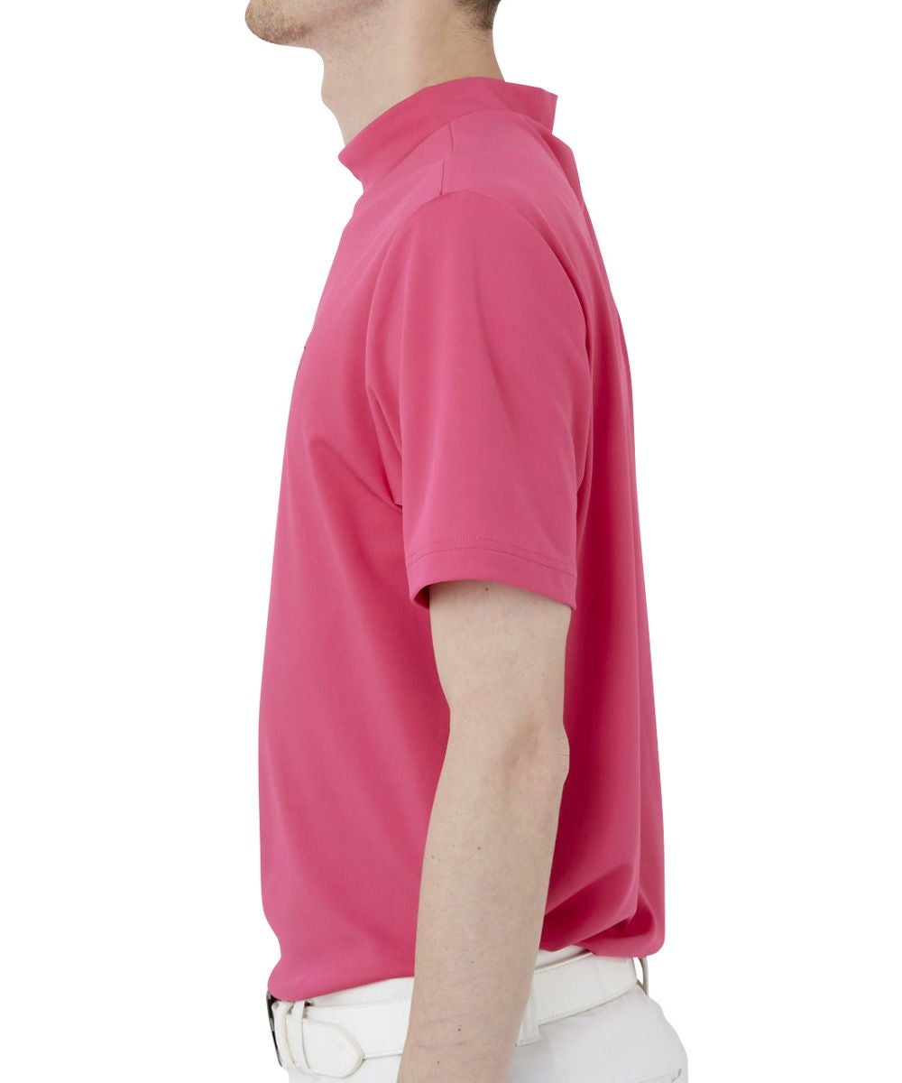 メンズ モックネック ハイネック半袖シャツ ピンク