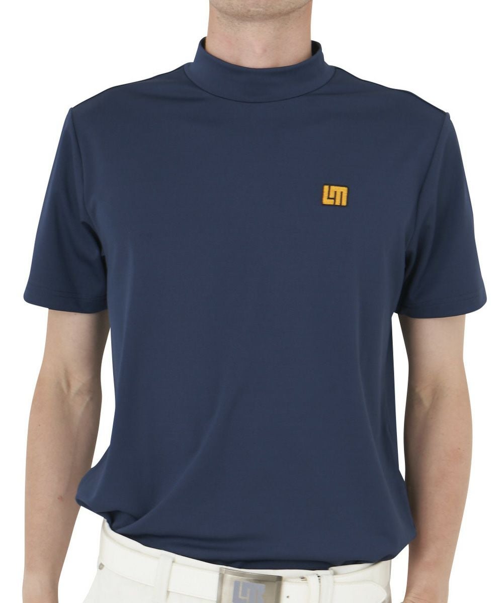 メンズ モックネック ハイネック半袖シャツ ネイビー