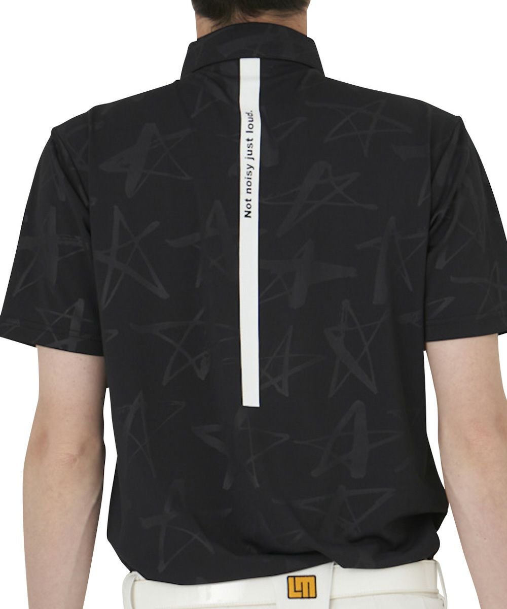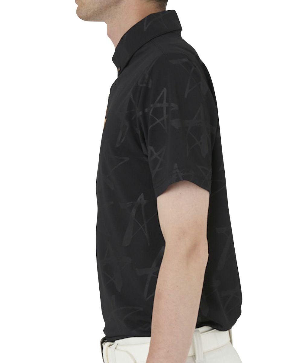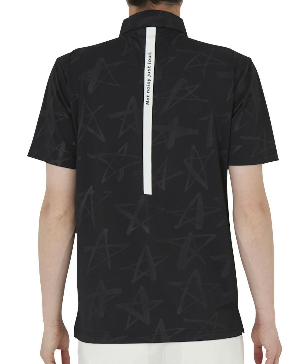 メンズ 半袖ポロシャツ シューティングスター柄エンボス ブラック 吸汗速乾 UV
