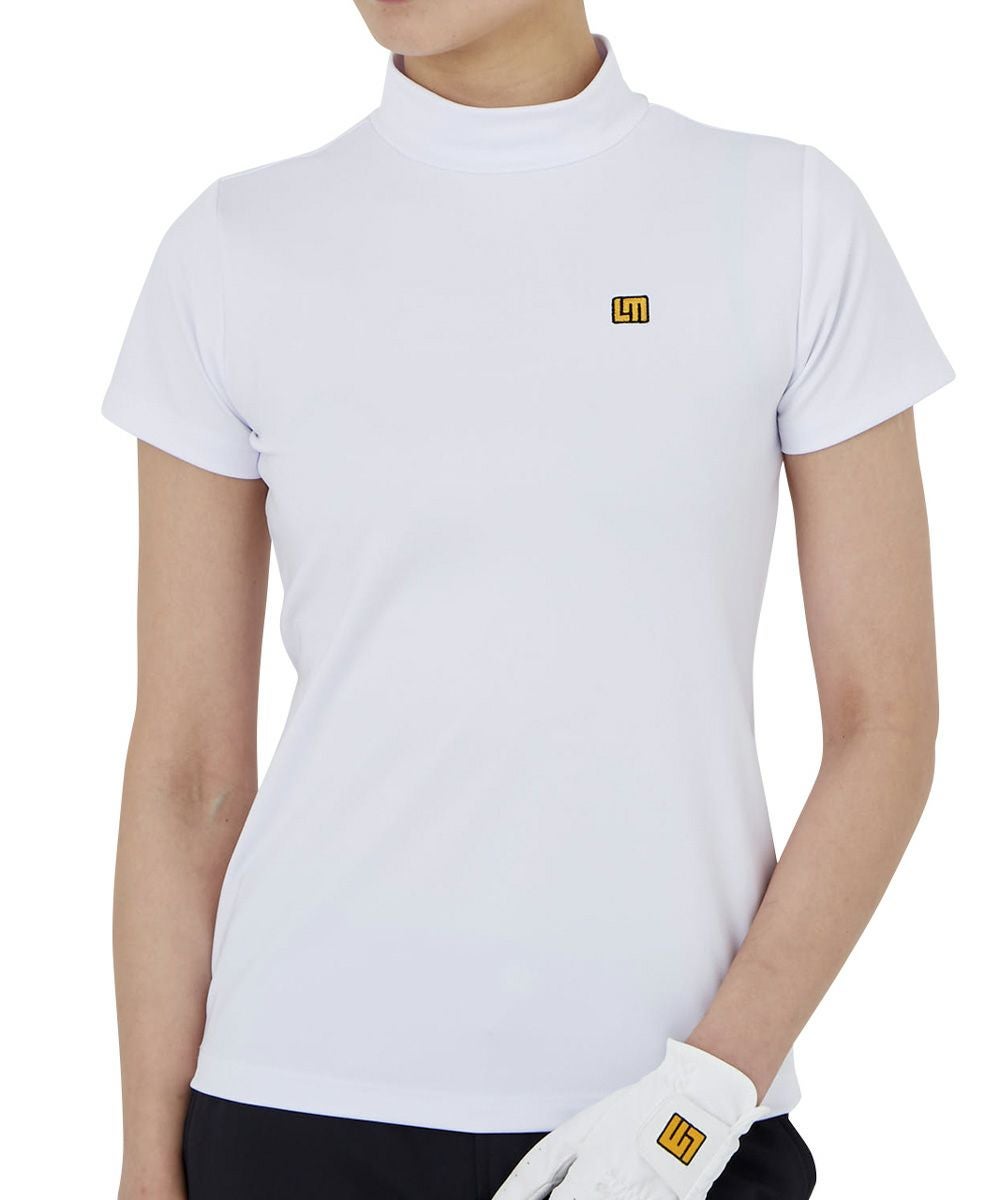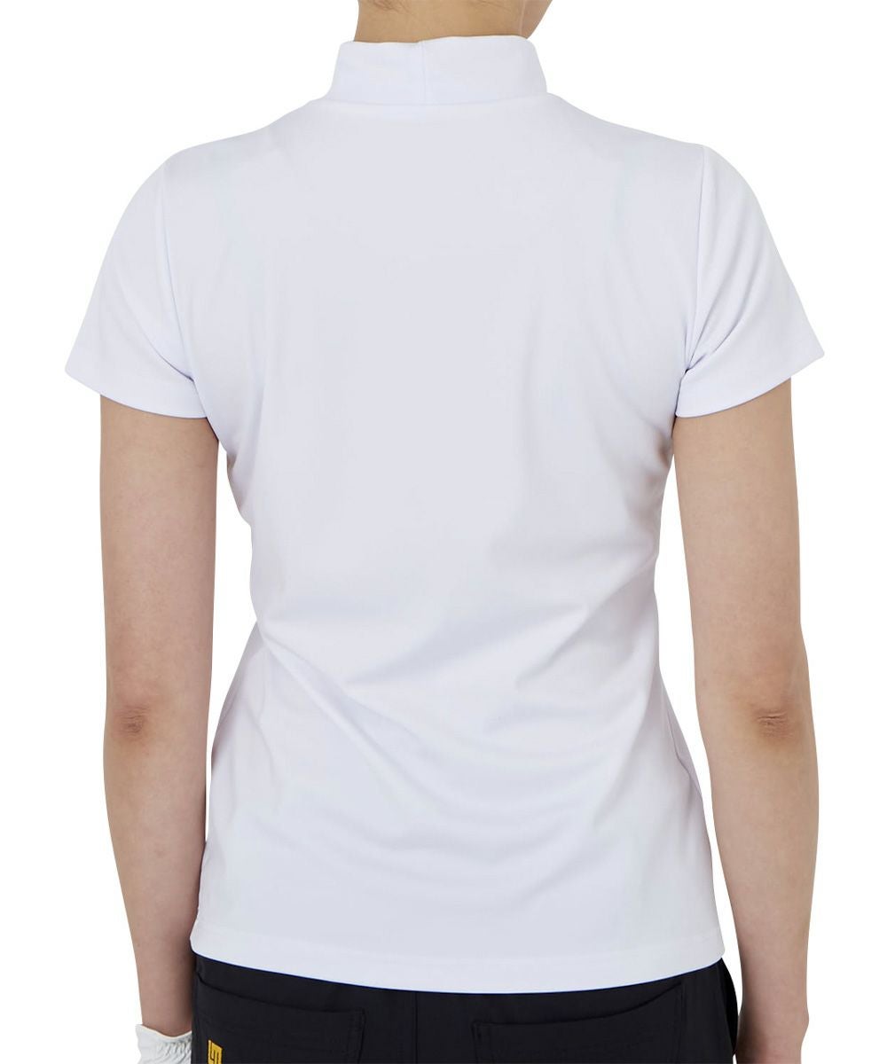 レディース モックネック半袖シャツ(ホワイト) 吸汗速乾 UV