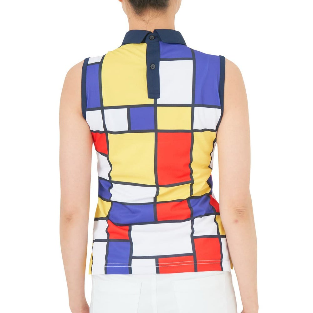 サラッとした肌触りのポリエステル素材を使用した 柄ノースリーブシャツ。ネオンカラーを打ち出しに今シーズンのインパクトのある柄を展開。