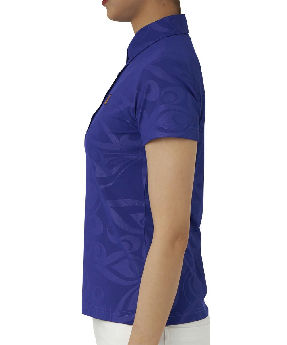 レディース 半袖ポロシャツ エンボス ブルー 吸汗速乾 UV