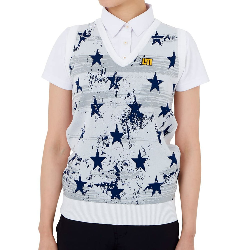 レディース 星柄ニットベスト ホワイト