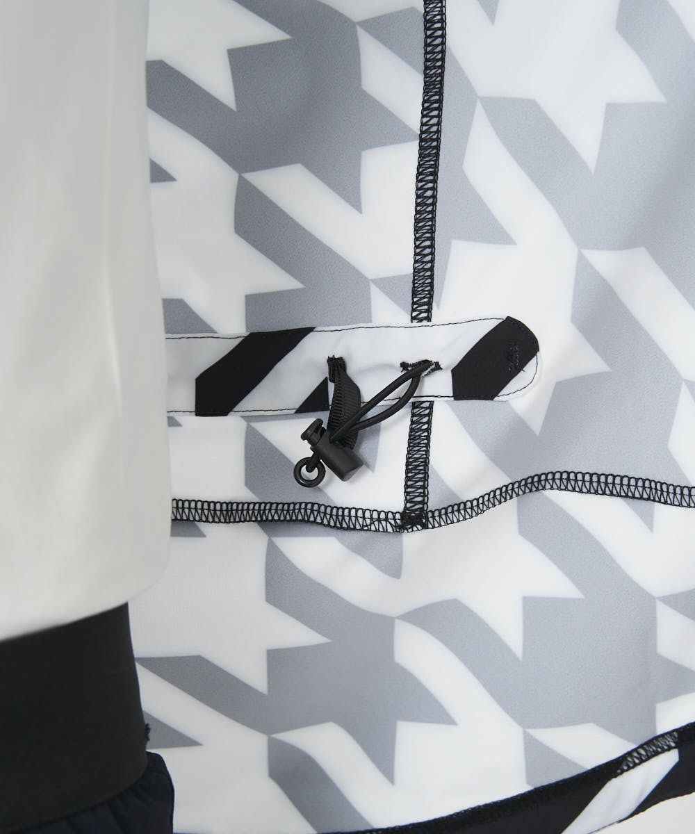 あらゆる動作を快適にする特殊な縫製パターンを採用。4WAYストレッチ生地と相まって着用時のストレスを感じさせません。各所に備え付けられたドローコードを調整することで雨や風の侵入を防ぎ、ウエアのバタつきも軽減します。さらに撥水加工を施すことでアウトドアシーンにおける理想のレディースウェアが完成しました。