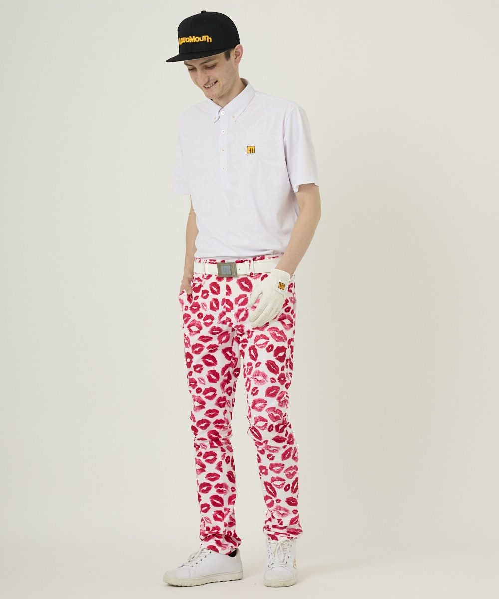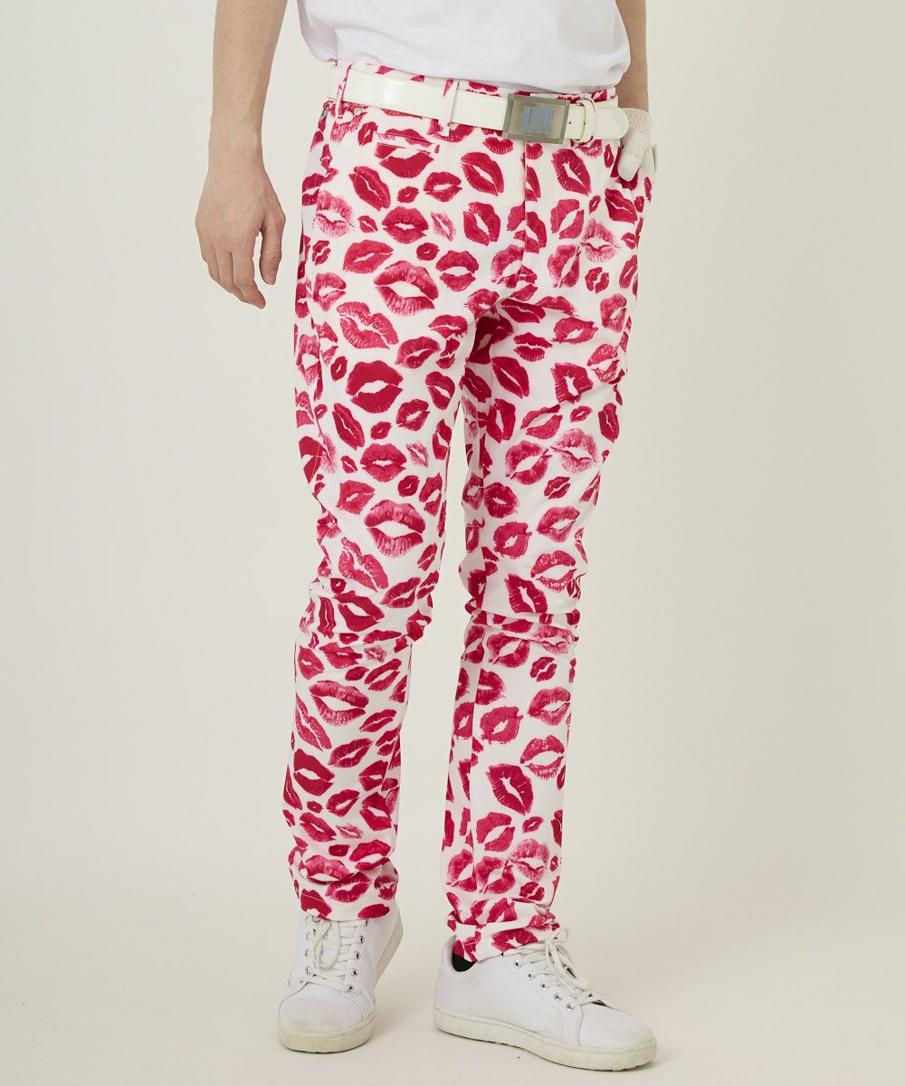 メンズ テーパードパンツ 接触冷感素材 キッス柄 ピンク 吸汗速乾/UV/接触冷感