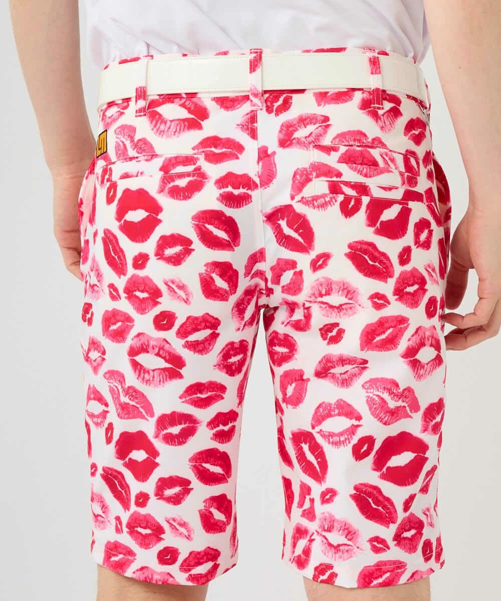 メンズ ショートパンツ ツイル素材 キッス柄 ピンク 吸汗速乾/UV/接触冷感