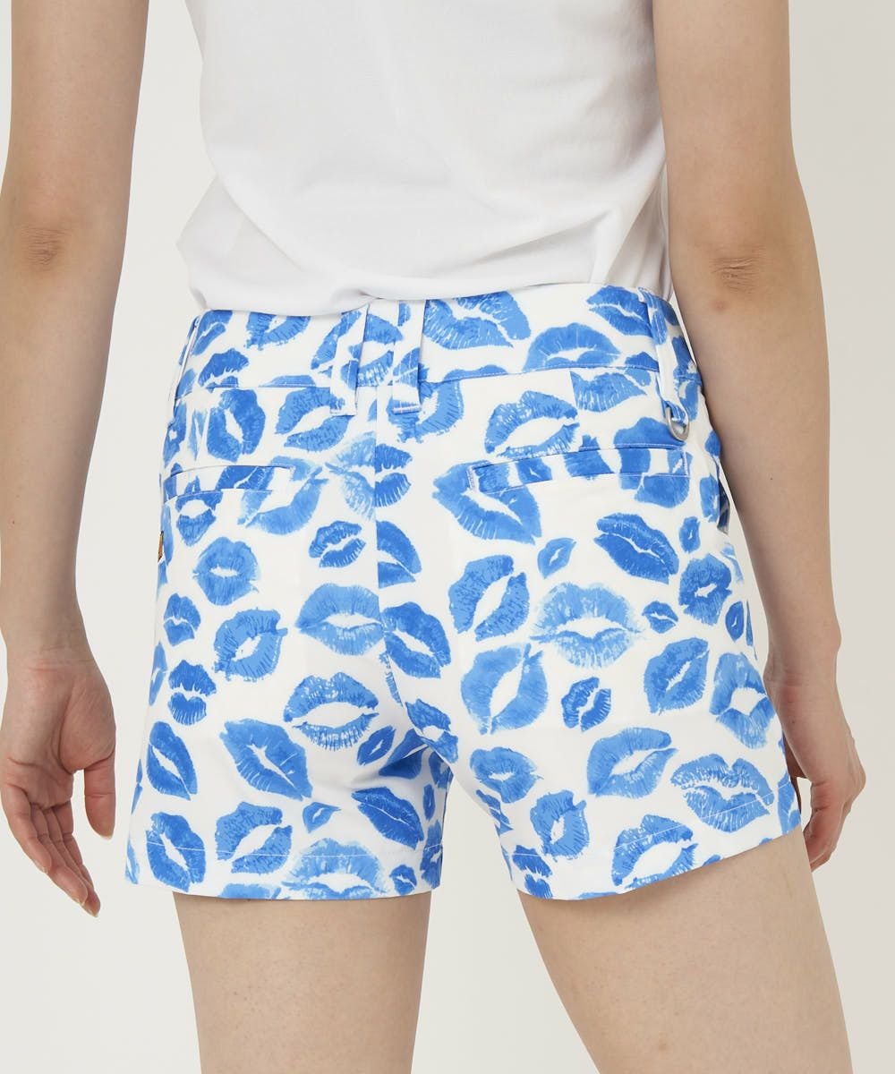 レディース ショートパンツ 接触冷感素材 ツイル素材 キッス柄 ターコイズ 吸汗速乾/UV/接触冷感