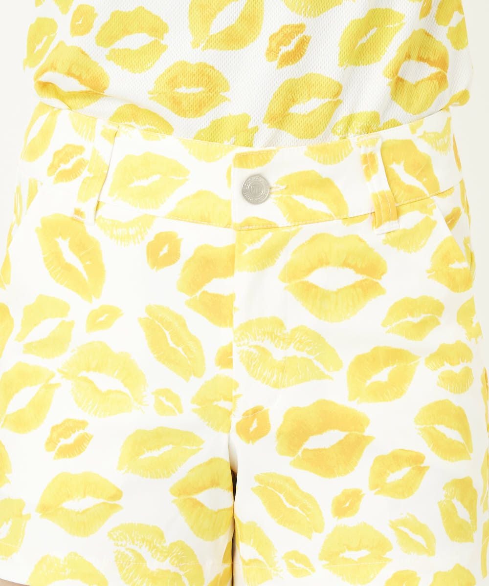 レディース ショートパンツ 接触冷感素材 ツイル素材 キッス柄 イエロー 吸汗速乾/UV/接触冷感