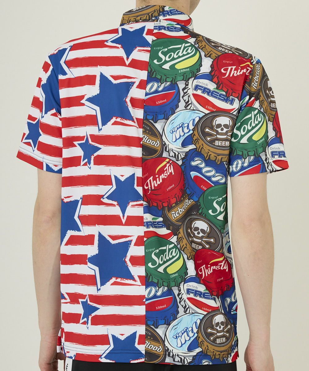 定番人気のプレミアムカノコ素材の総柄半袖シャツ。今シーズンのインパクトある柄と柄を組み合わせたクレイジーパターンデザイン。