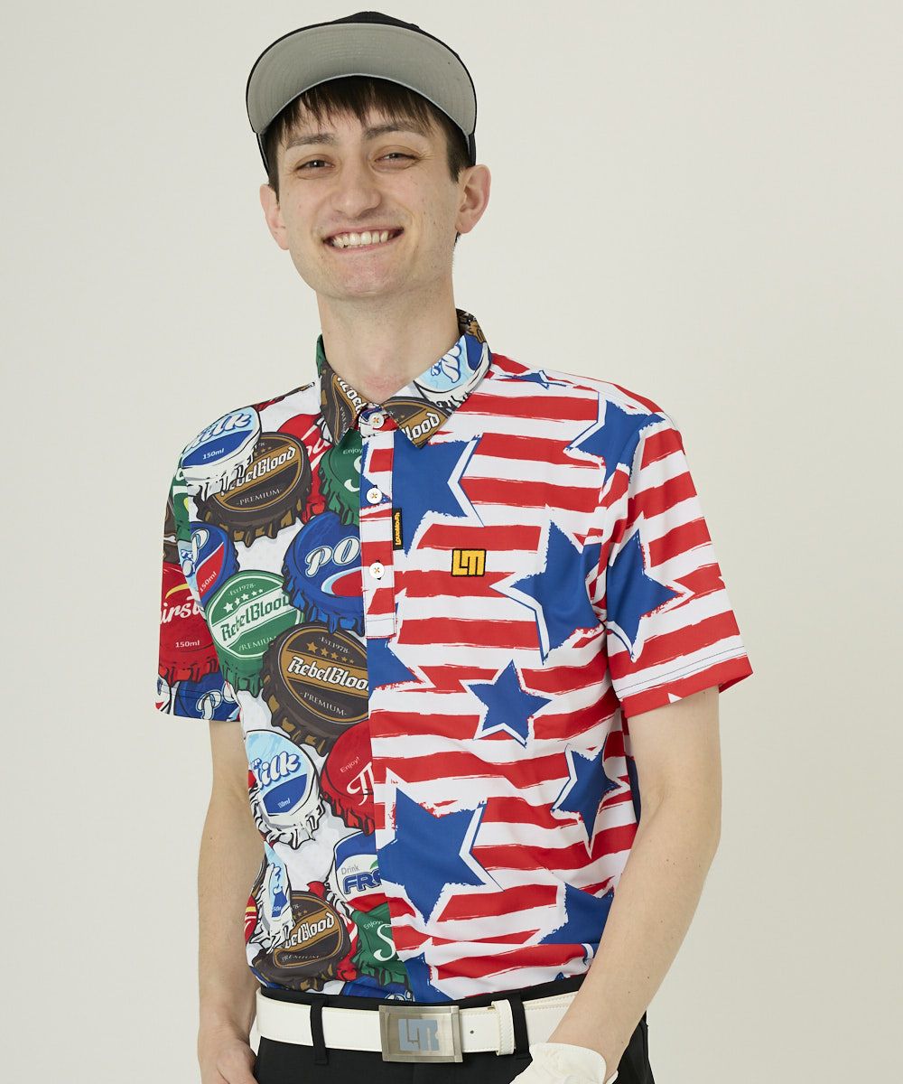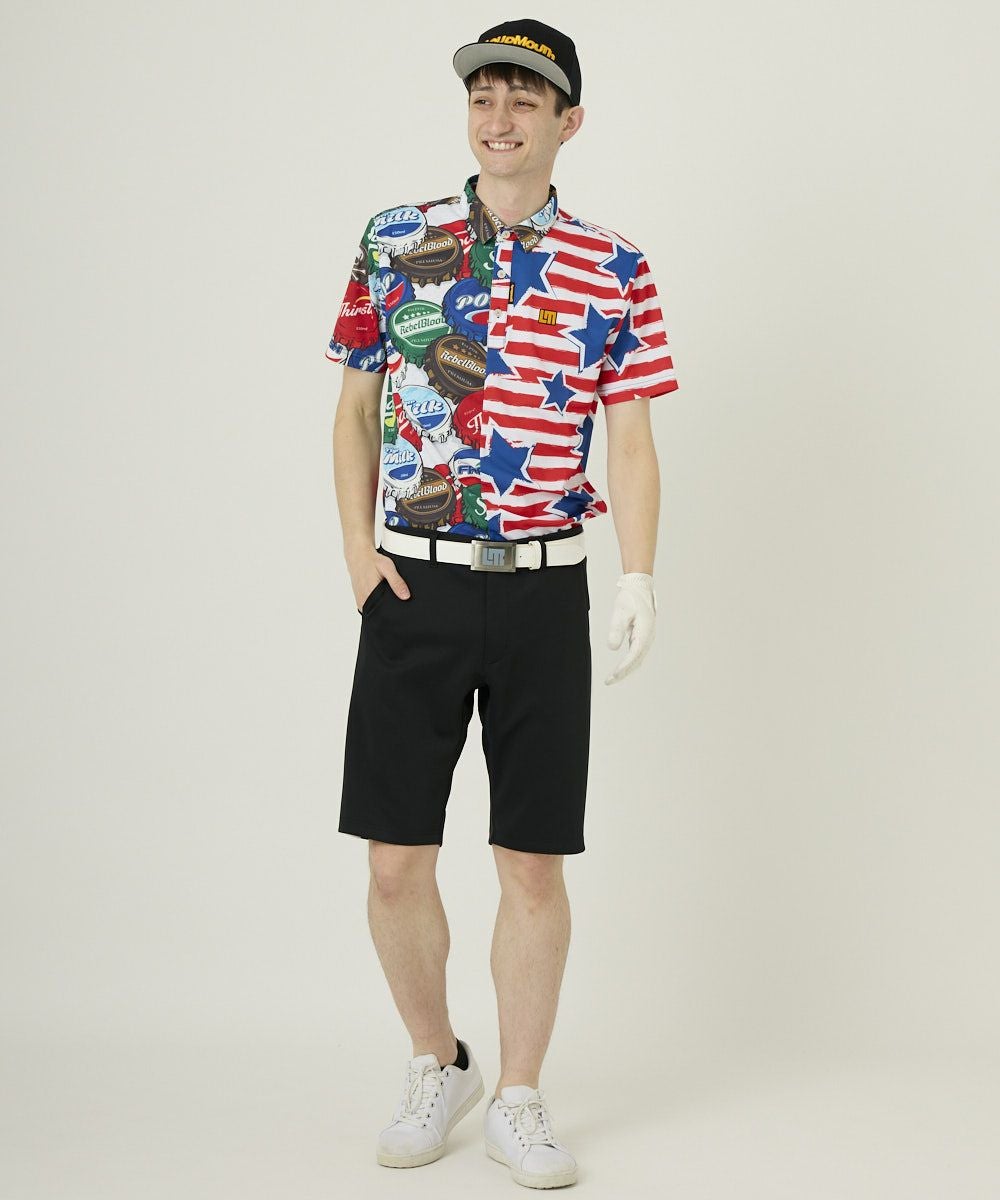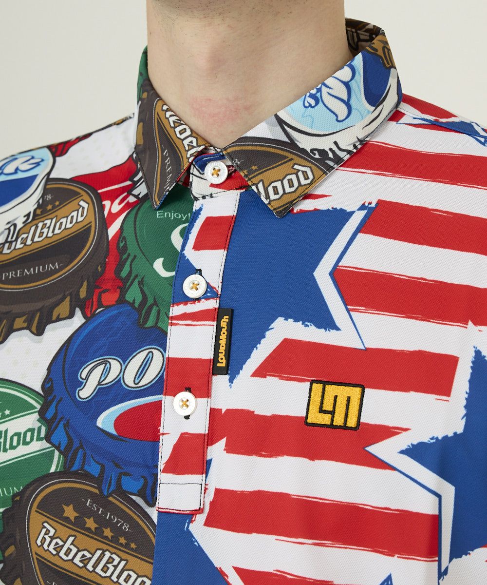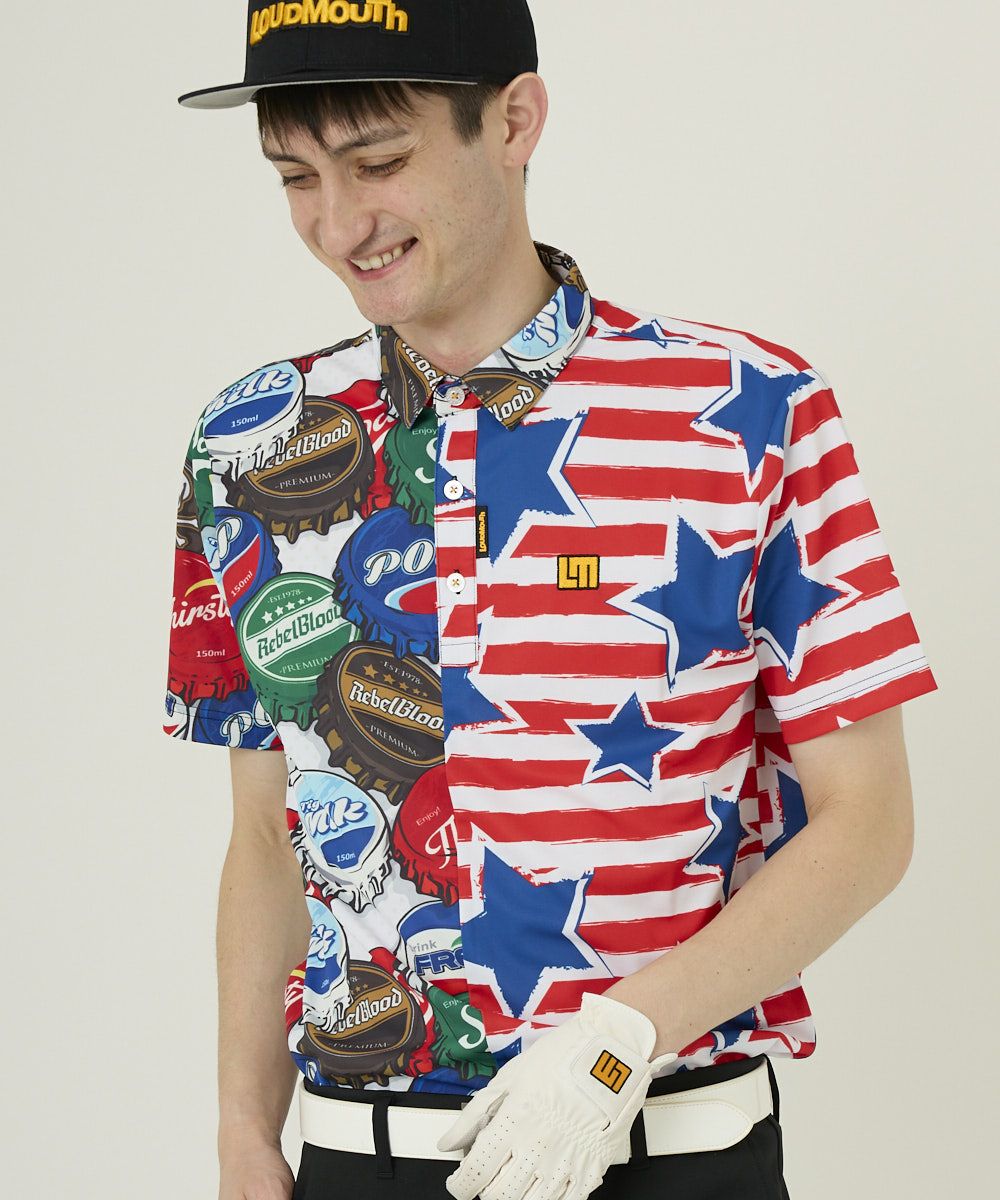 メンズ 半袖ポロシャツ プレミアムカノコ素材 クレイジーパターン レトロクラウン 吸汗速乾/UV/接触冷感